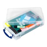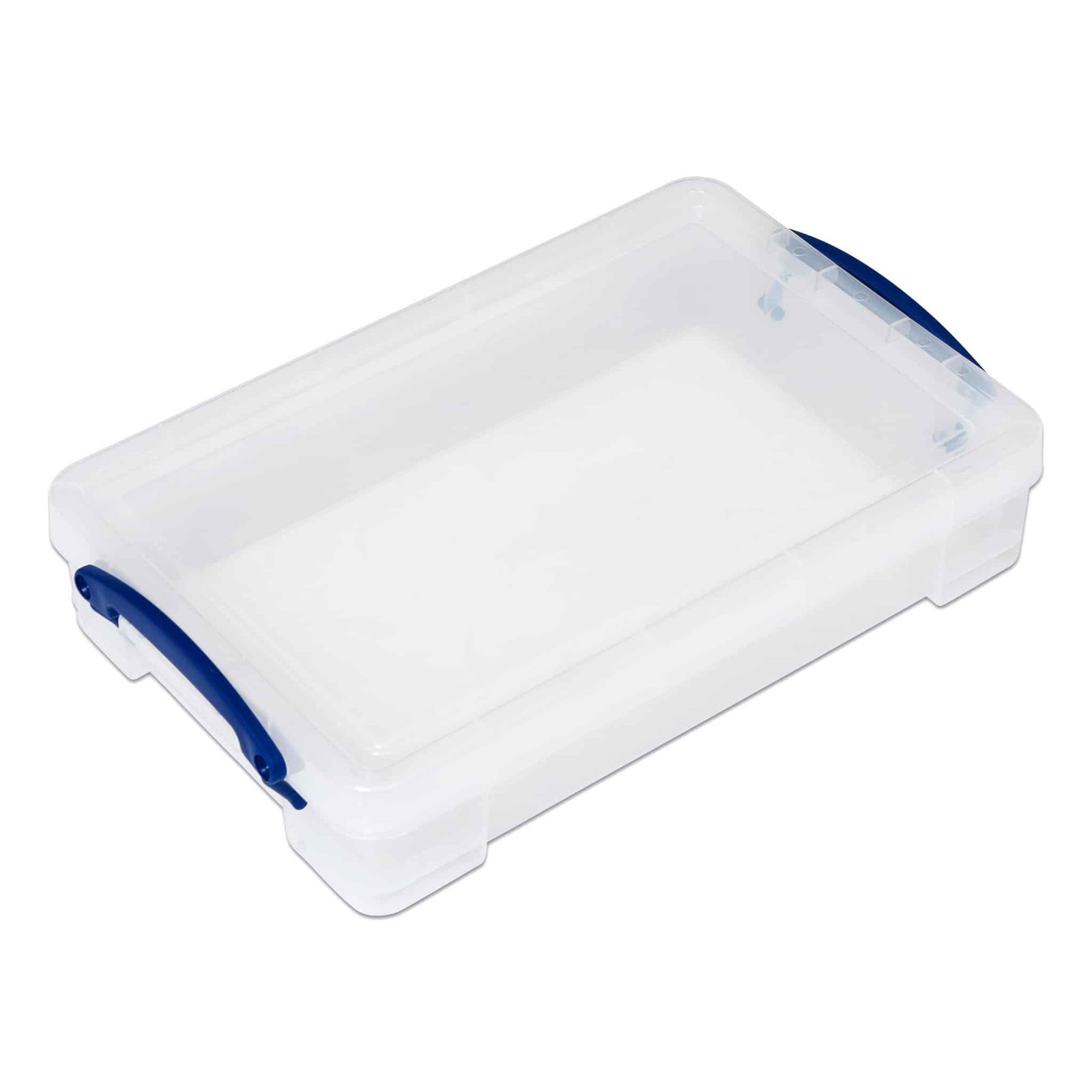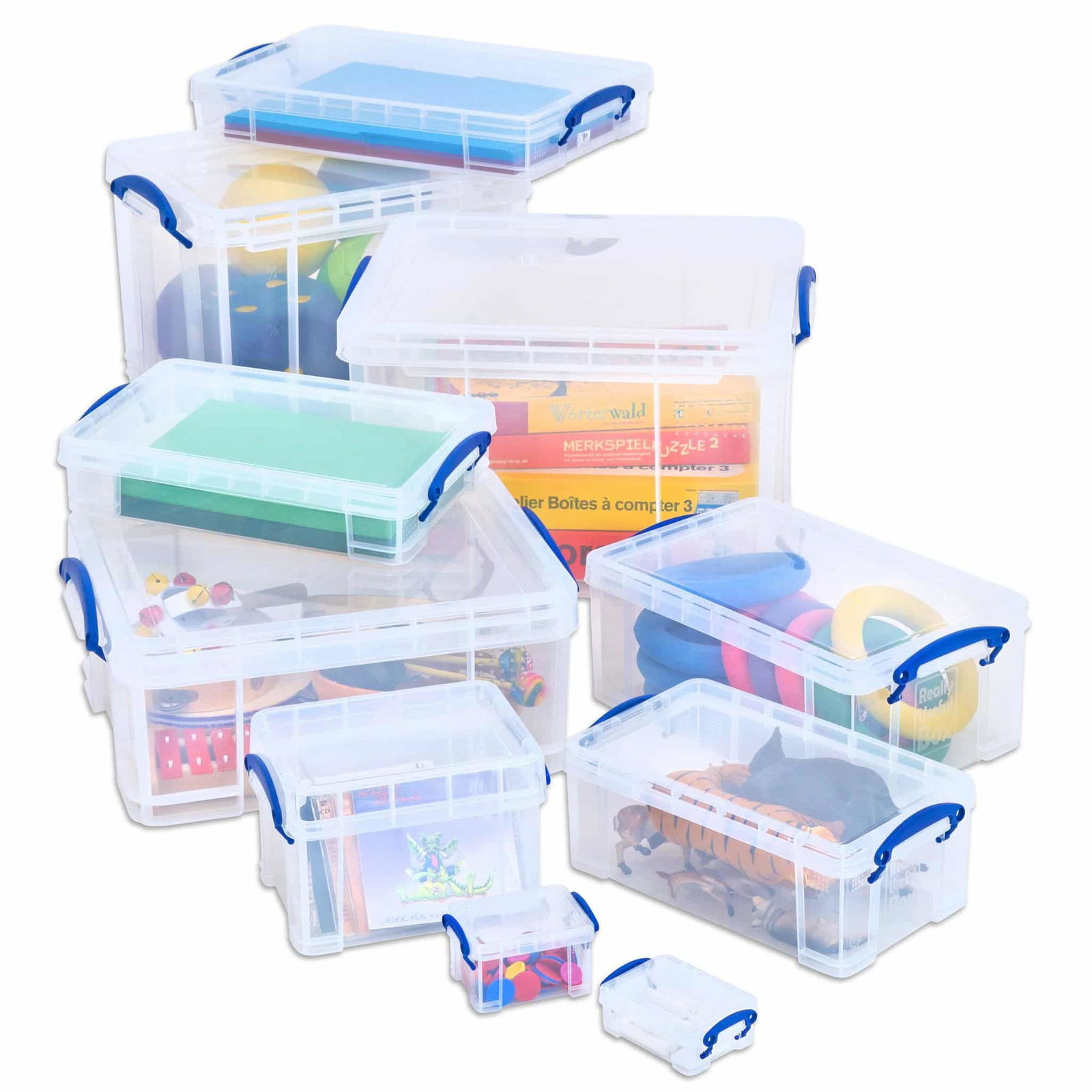 Die transparente Bauweise der Box erleichtert die Identifikation des Inhalts auf einen Blick, während die kompakte Größe perfekt für Ordnung auf begrenztem Raum geeignet ist. Ob zu Hause, im Büro, in der Schule oder im Kindergarten – die Really Useful Aufbewahrungsbox ist der ideale Begleiter für eine mühelose Organisation.