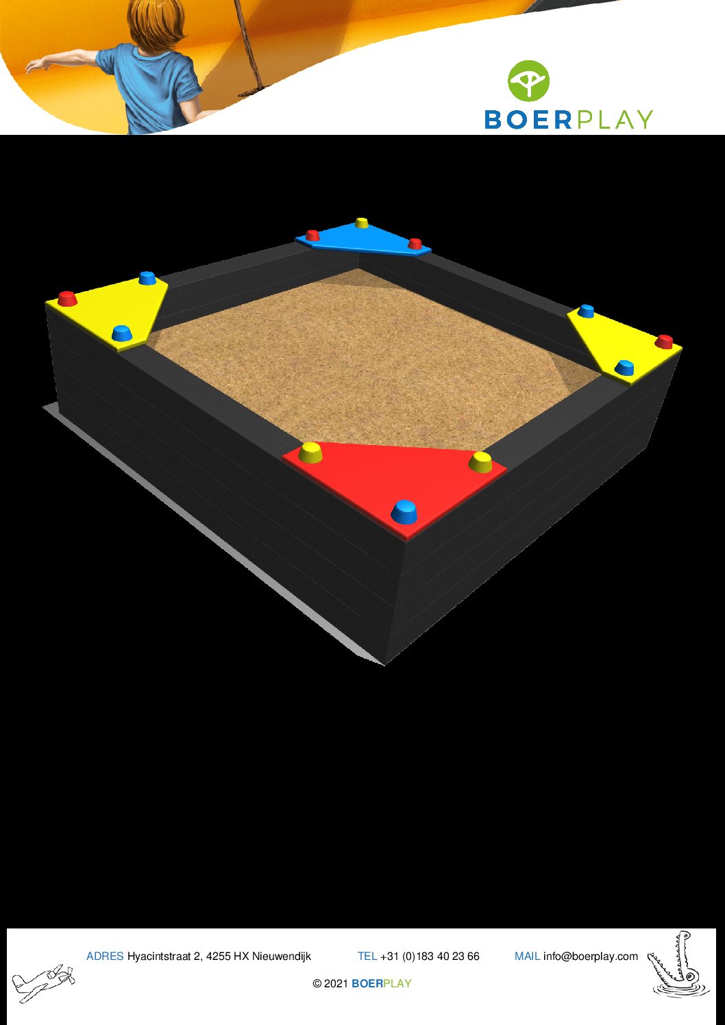 Technische Daten Rebo Sandkasten 1.5 x 1.5 x 0.5 m von YALO Spielplatzgeräte