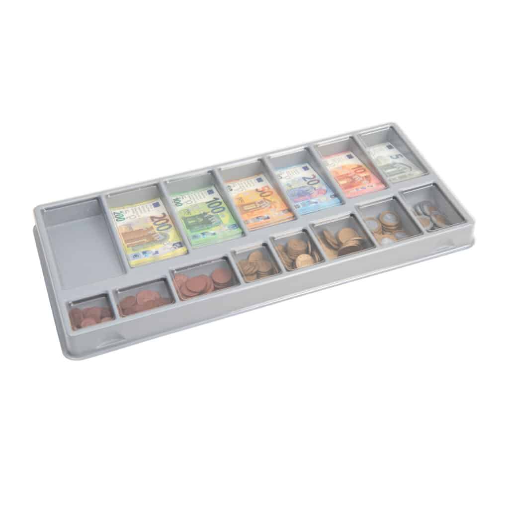 Das Rechengeld-Set beinhaltet alles, was Ihre Schüler brauchen, um die Werte von Euro-Scheinen und -Münzen zu erfassen. Die Fächer in der Eurokasse sind ideal sortiert, um einen schnellen Zugriff zu gewährleisten. Ihre Schüler lernen durch praktische Übungen, wie sie im Alltag mit Geld umgehen, inklusive dem Erkennen von Preisen und dem Berechnen von Wechselgeld.