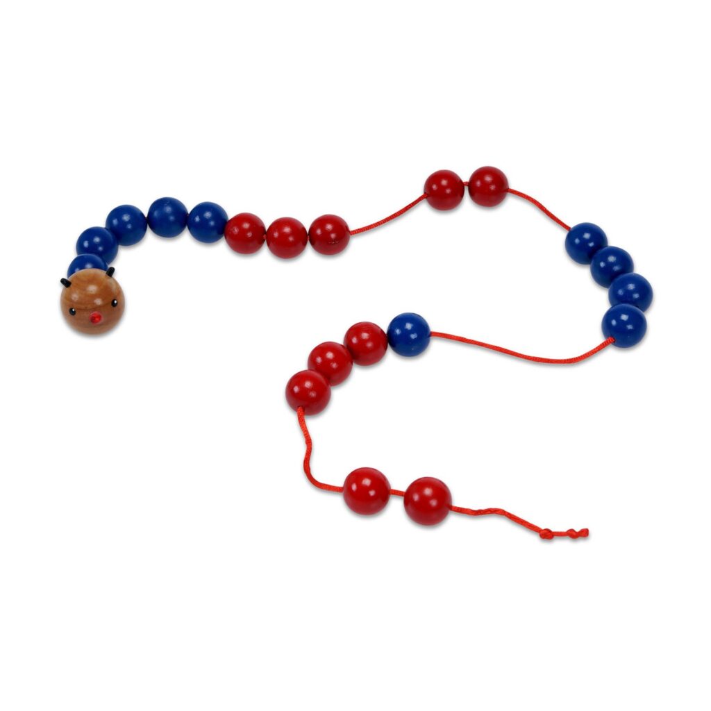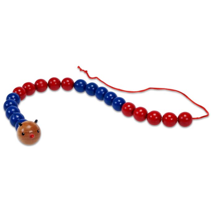 Die kleine Raupe besteht aus 20 Holzkugeln, die auf einer stabilen Fädelschnur aufgereiht sind. Die bunten blauen und roten Kugeln helfen den Kindern nicht nur beim Zählen, sondern auch beim Addieren und Subtrahieren. Durch das Greifen und Bewegen der Kugeln wird das Verständnis für den Zehnerübergang gefördert, was ein wichtiger Schritt in der mathematischen Entwicklung ist.