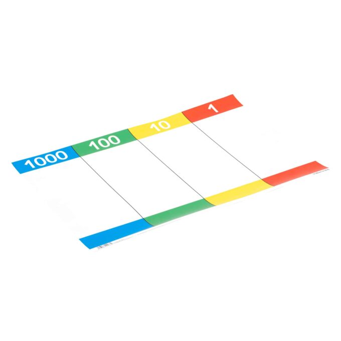 Die Betzold Rechentafel ermöglicht es den Kindern, ihre Zahlen intuitiv zu begreifen. Auf den verschiedenen Feldern der schreibbaren und abwischbaren Folie können Legesteine, Knöpfe oder farbige Linsen platziert werden. Diese Platzierung visualisiert die jeweilige Dezimalzahl und macht den Zahlenraum von bis zu 1000 greifbar.