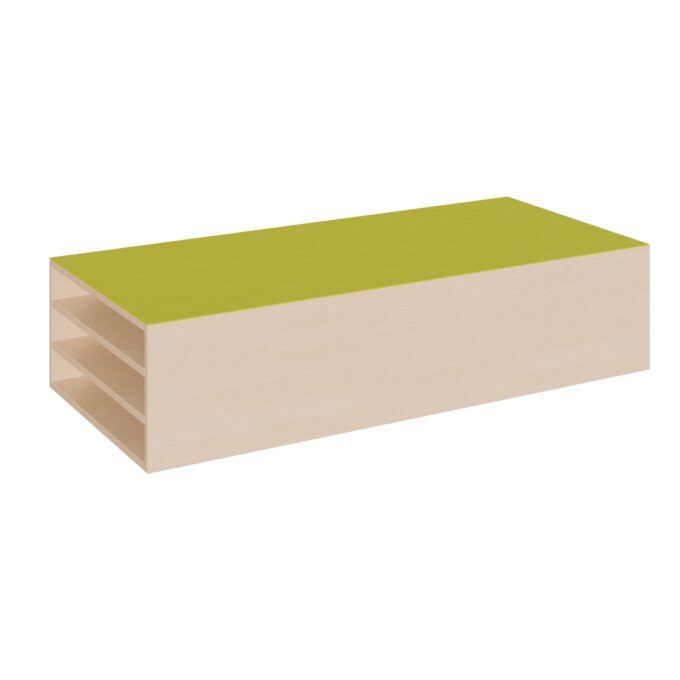 Kombinieren Sie eine robuste Spiel- und Bewegungsebene mit einer genialen Aufbewahrungslösung für die Mittagsruhe: Unser rechteckiges Podest für Liegepolster ist das ultimative Multifunktionstalent für jeden Gruppenraum. Auf seiner großzügigen, 150 cm breiten Fläche können Kinder bauen, spielen und die Welt von oben entdecken. Darunter, in den speziell konzipierten Fächern, finden bis zu vier Liegepolster einen sauberen, ordentlichen und schnell erreichbaren Platz. Erhältlich in drei verschiedenen Höhen, passt sich dieses Podest perfekt Ihren Bedürfnissen an und schafft eine harmonische Verbindung zwischen aktiven Phasen und wichtigen Ruhezeiten.