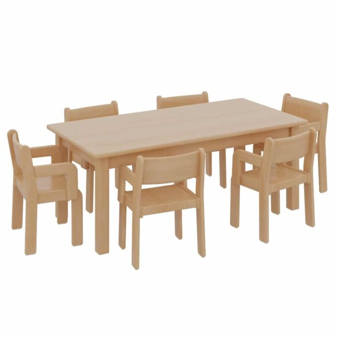 Rechtecktisch mit 6 TIM-Armlehnenstühlen für Kindergarten und Krippe