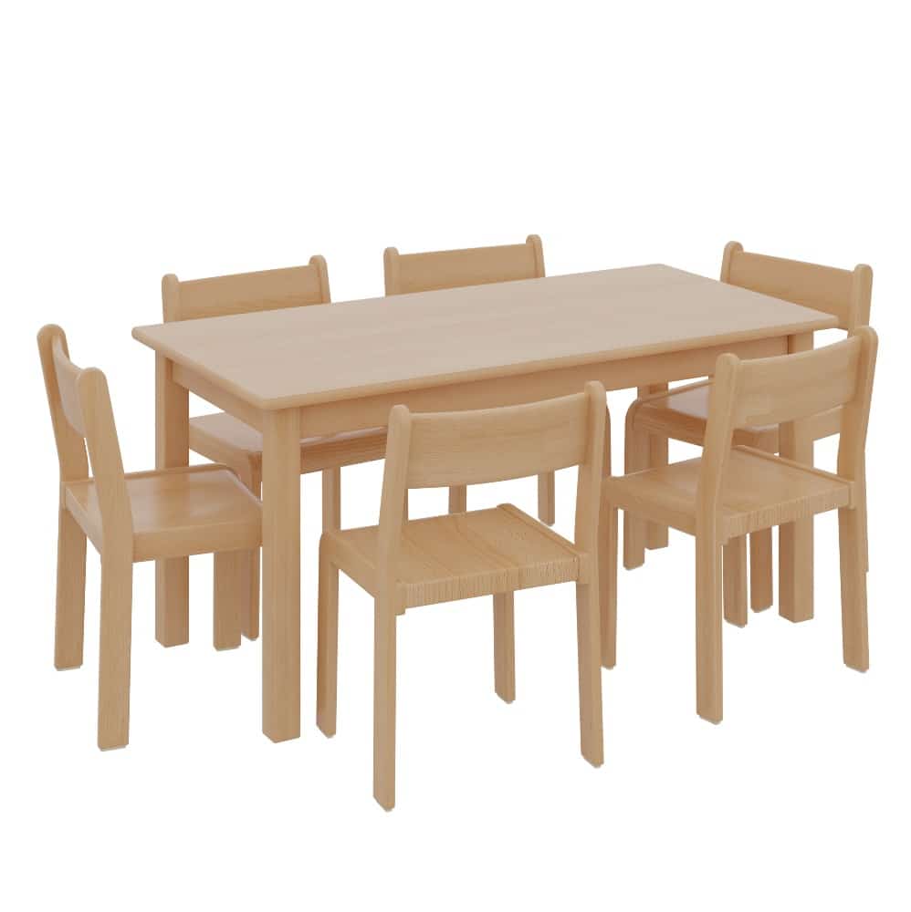 Rechtecktisch mit 6 TIM-Stühlen für Kindergarten und Krippe