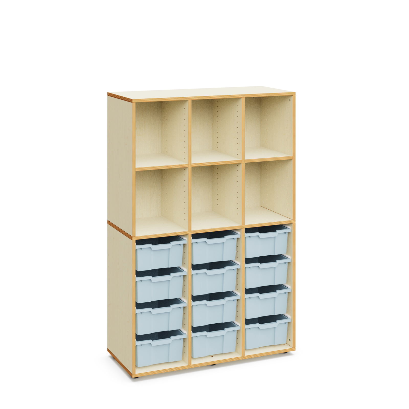 - Vielseitige Organisation: Die clevere Kombination aus 12 hohen Kunststoffboxen und 6 offenen Fächern ermöglicht eine flexible, übersichtliche Strukturierung aller Unterrichtsmaterialien.