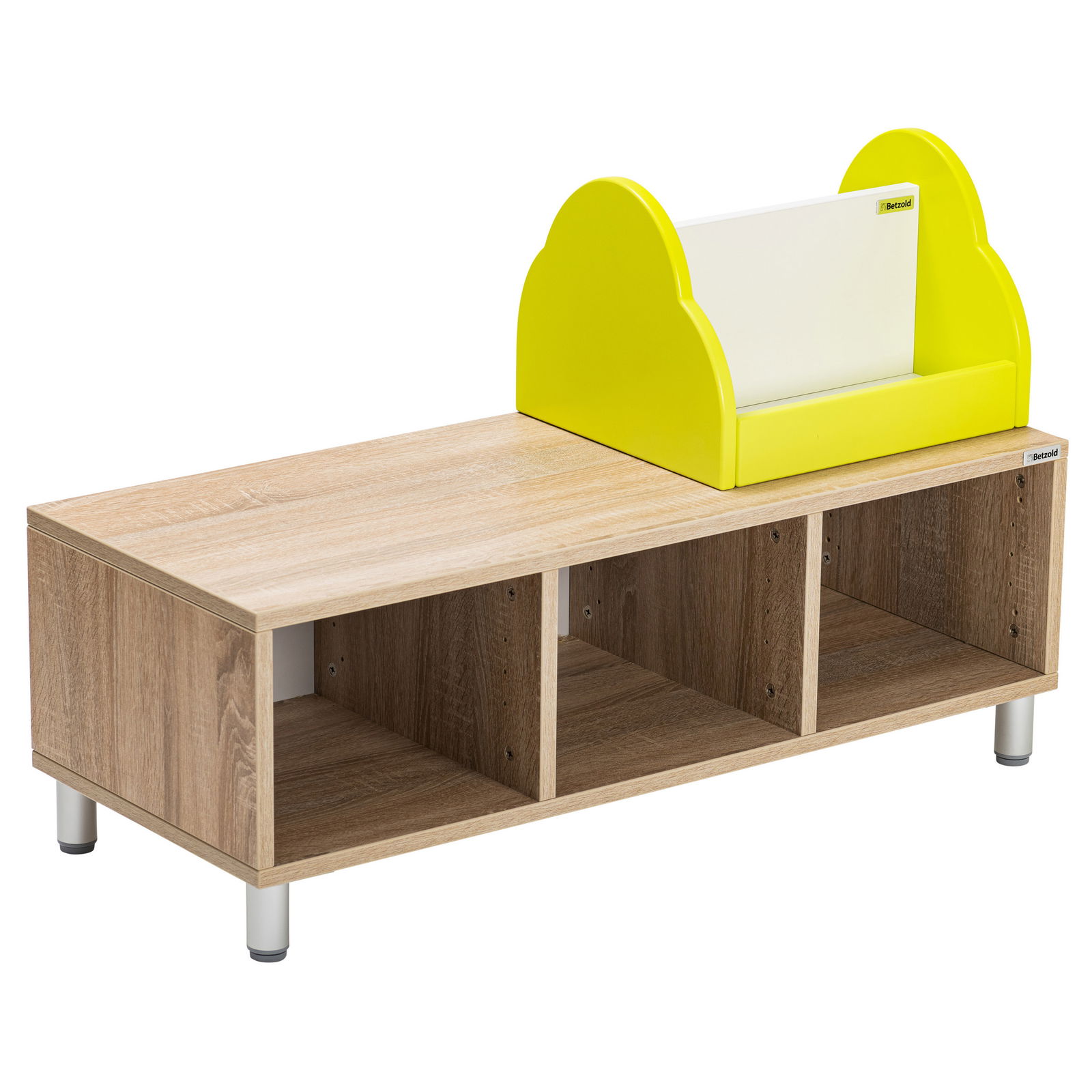 - Feste Verbindung: Der Aufsatz wird nicht einfach nur auf das Regal gestellt, sondern fest damit verbunden. Die mitgelieferten Sicherungsschrauben garantieren eine stabile und sichere Montage, die auch im turbulenten Kita-Alltag nicht verrutscht.