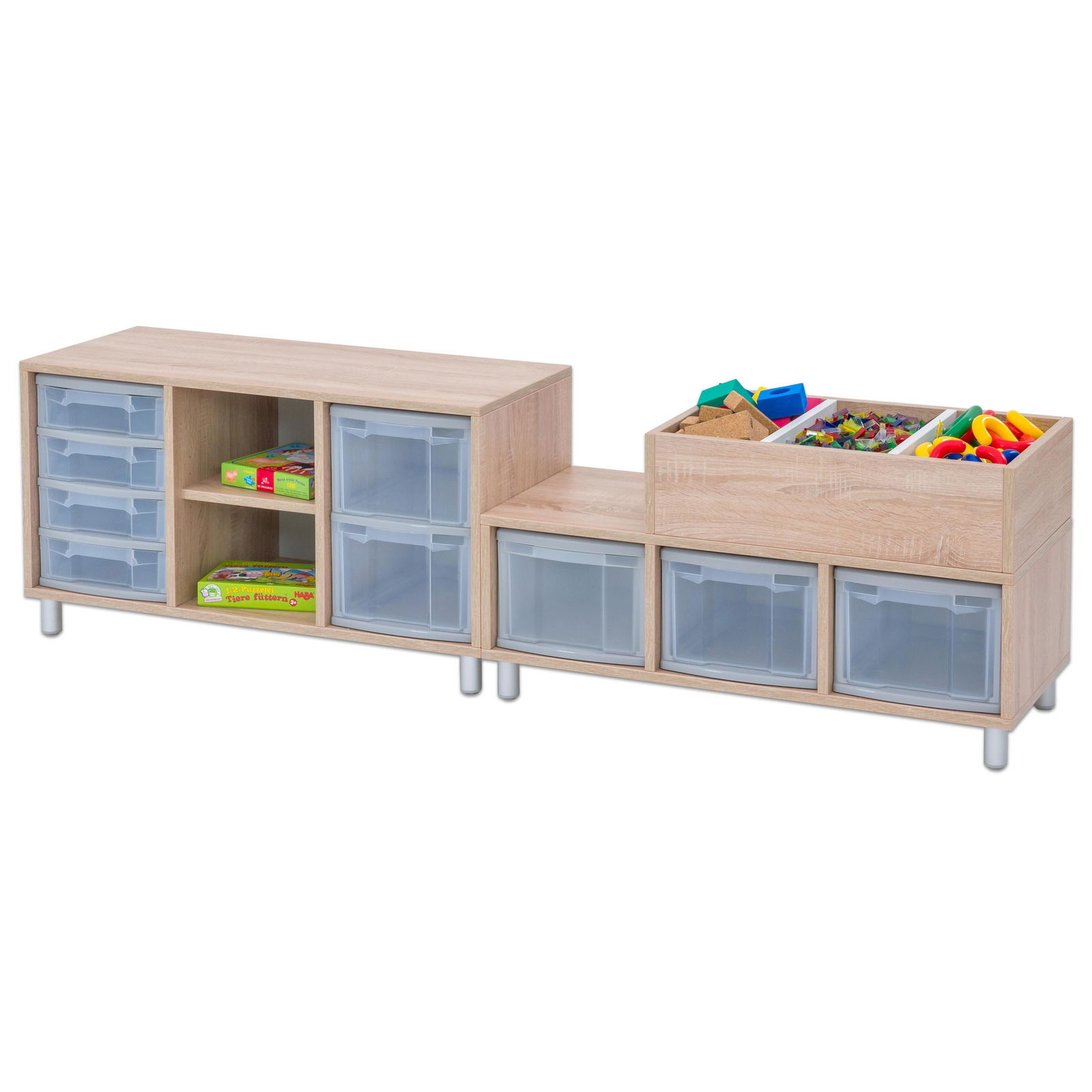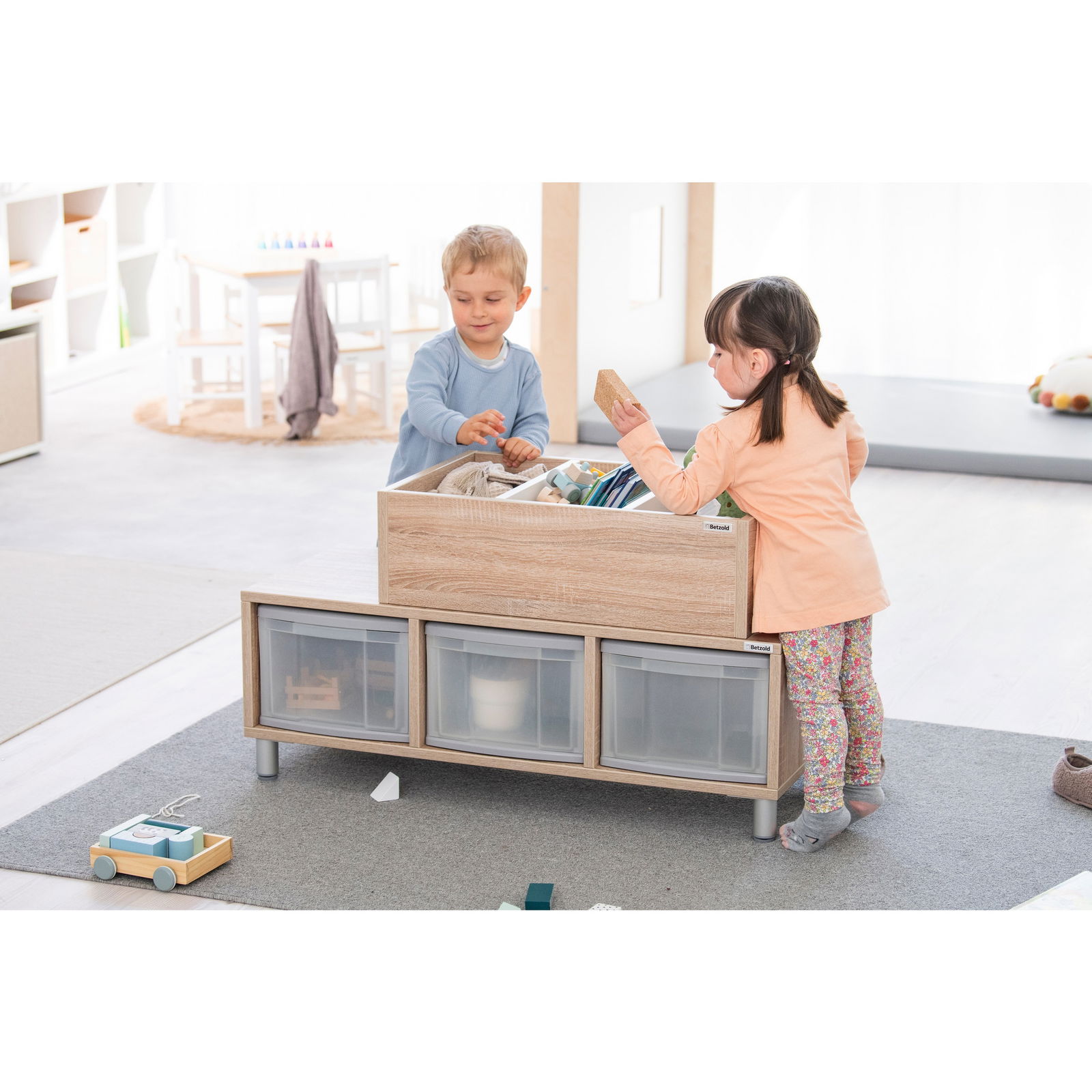 - Übersicht auf einen Blick: Durch die offene Gestaltung sehen Kinder sofort, was sich in den Fächern befindet. Langes Suchen entfällt und die Konzentration bleibt beim Spiel.
