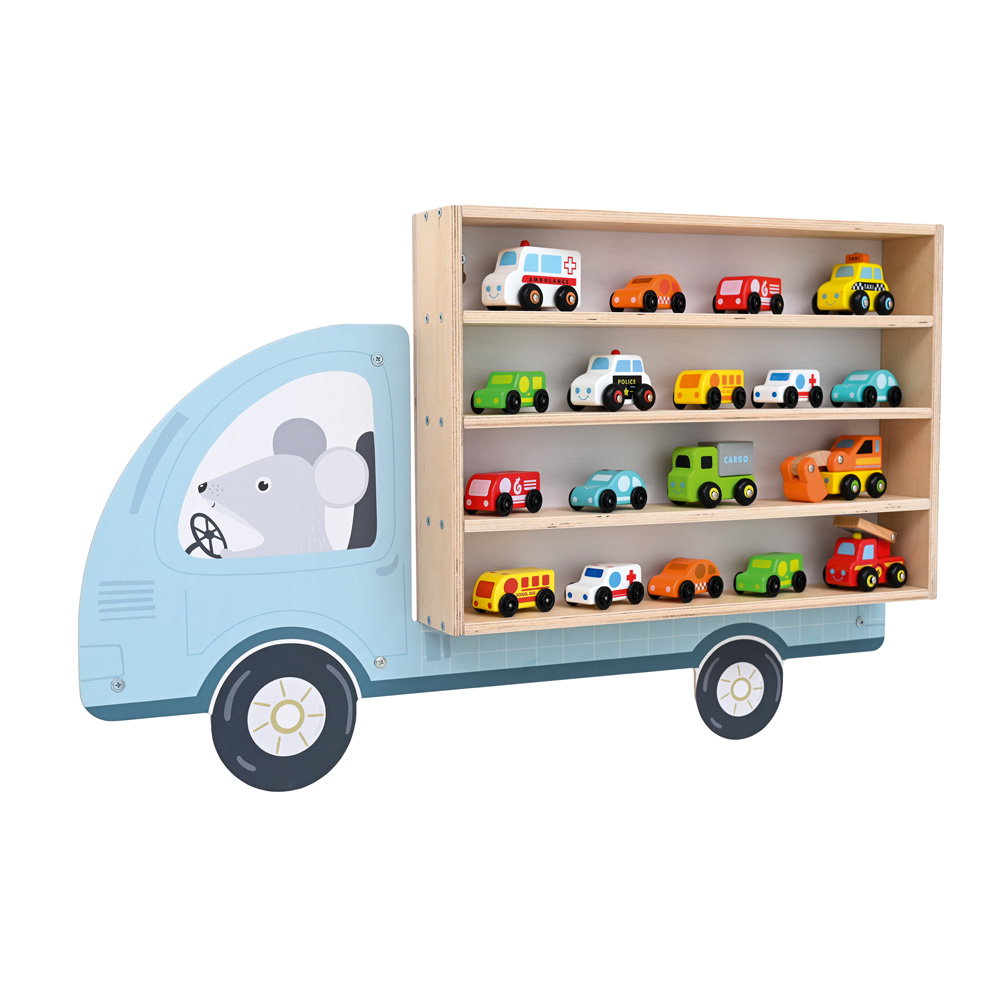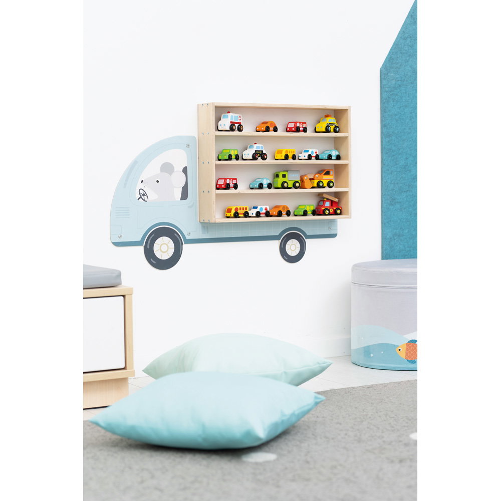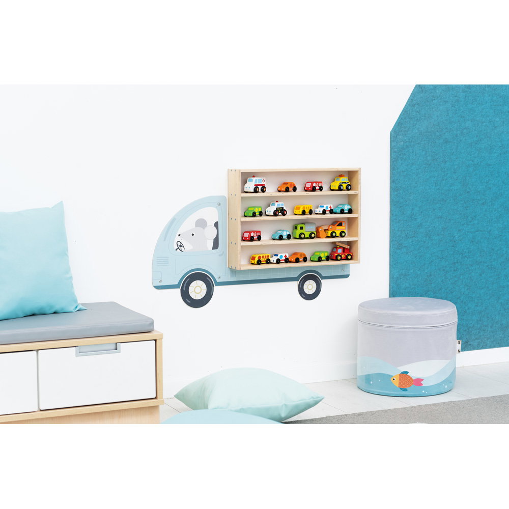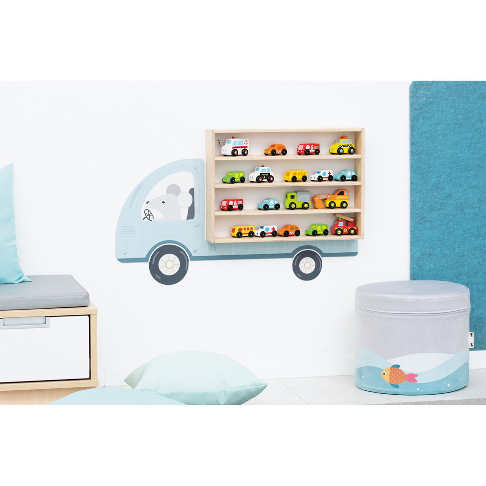 Die charmante Lastwagen-Optik macht das Regal zu einem echten Blickfang. Es ist Möbel und Spielzeug in einem und fügt sich perfekt in jede kindgerechte Umgebung ein. - Übersichtliche Präsentation der Sammlung