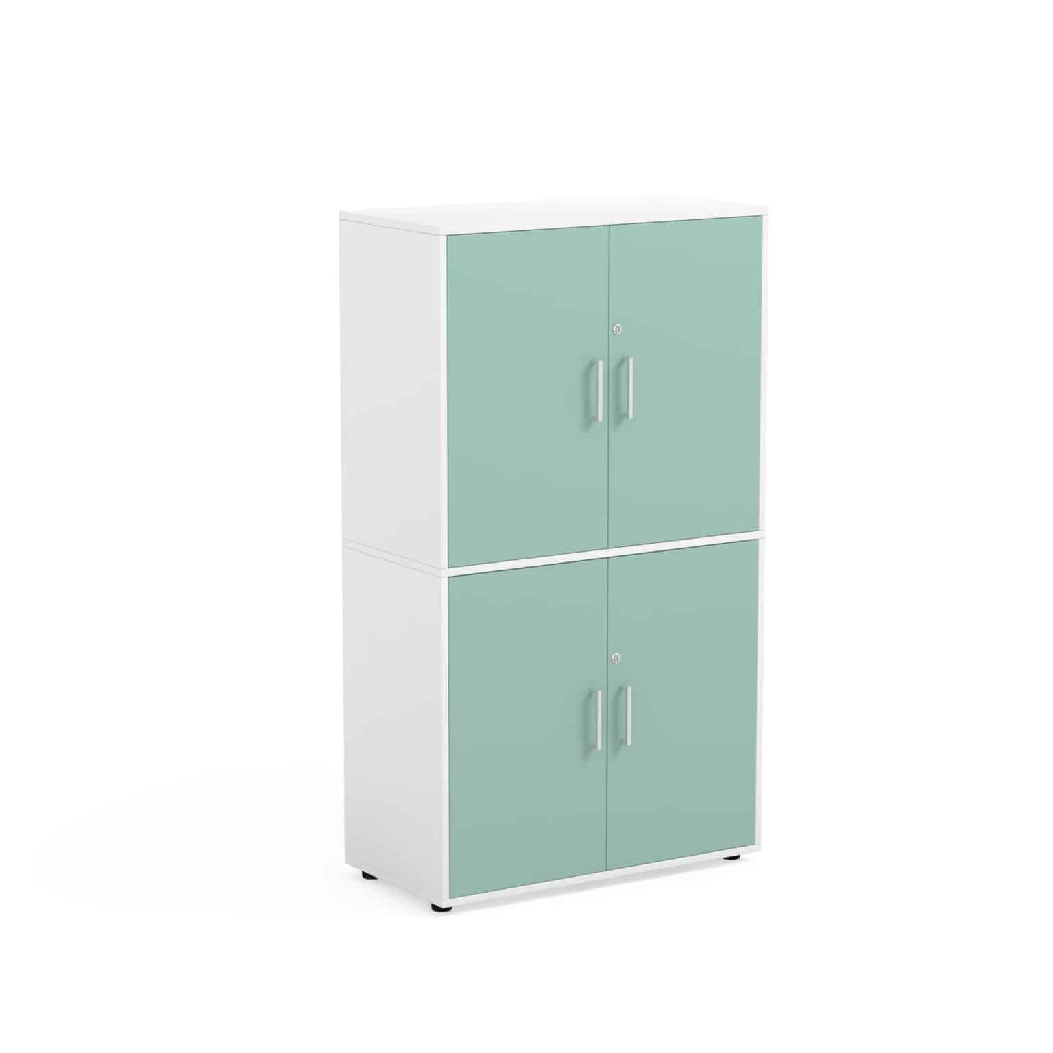Die Doppeltüren sind in verschiedenen Farben erhältlich und ermöglichen eine individuelle Gestaltung des Regals. Diese Türen sind nicht nur dekorativ, sondern auch abschließbar, was bedeutet, dass Sie wertvolle Materialien oder persönliche Gegenstände sicher aufbewahren können. Dabei sorgt die 10 mm dicke Rückwand für zusätzliche Stabilität und schützt den Inhalt vor Beschädigungen.