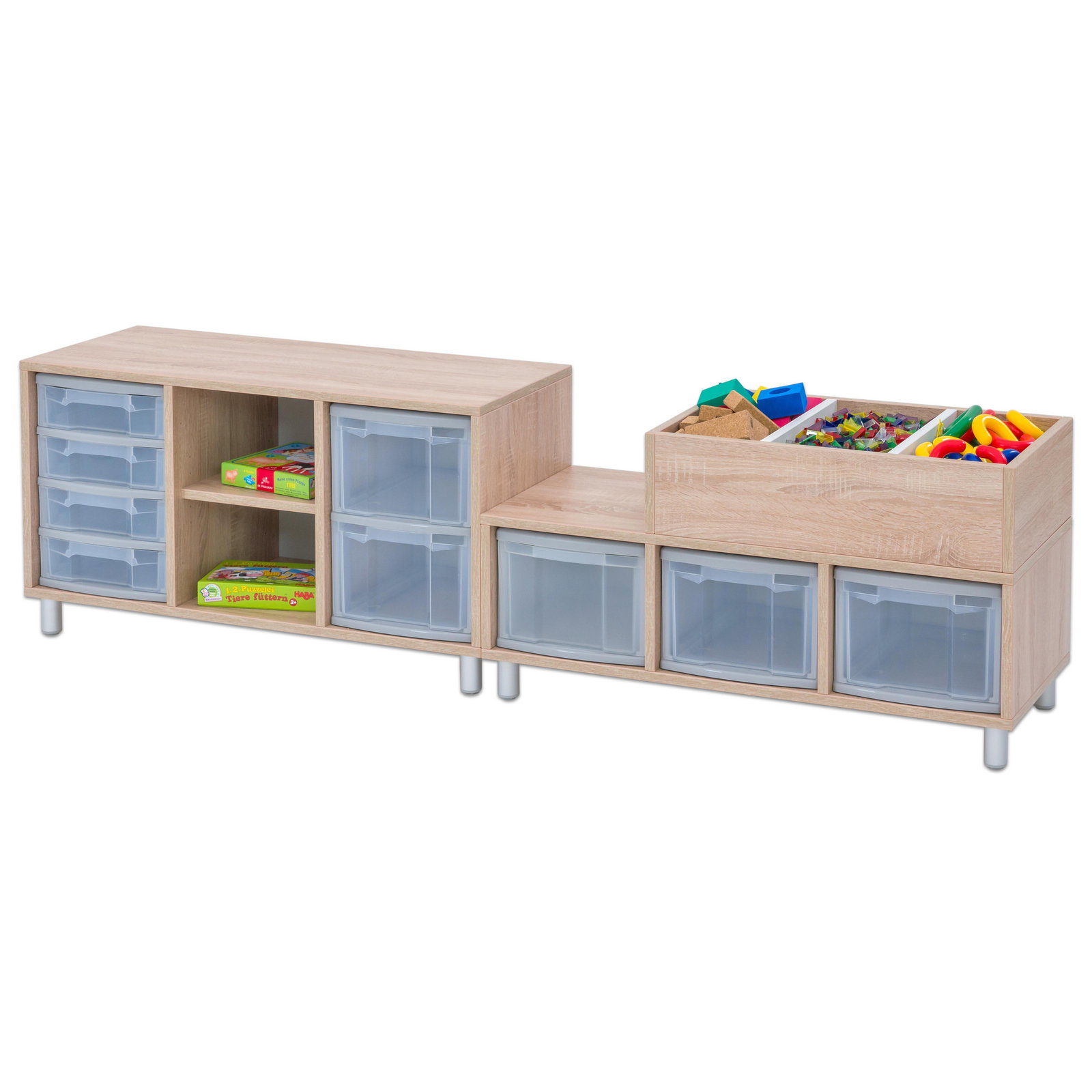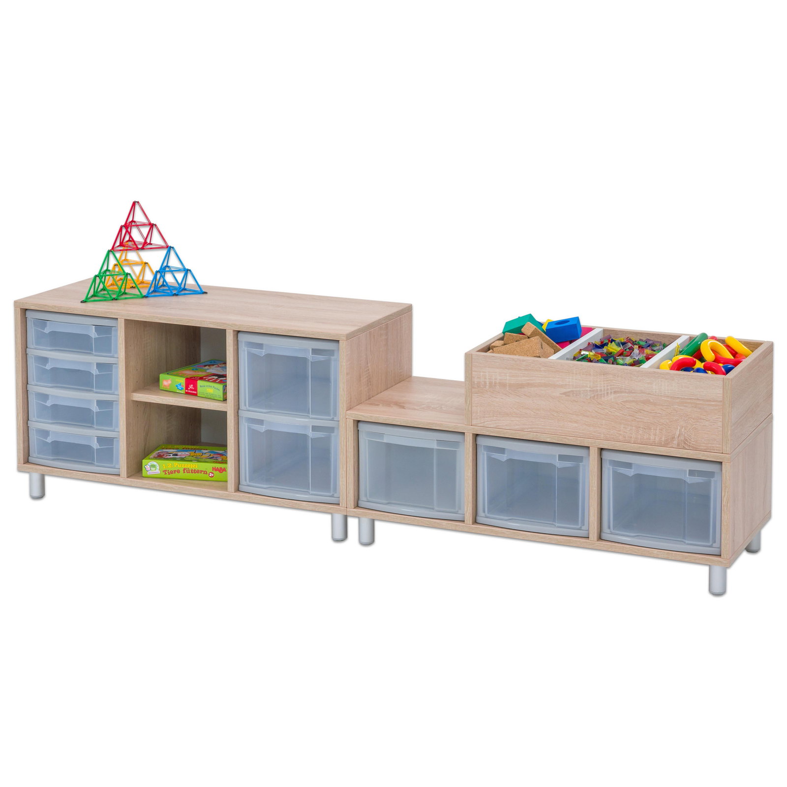 - Vielseitiger Stauraum: Mit insgesamt 9 enthaltenen Boxen (5 große und 4 kleine) aus robustem treeNside-Material haben Sie sofortige Sortiermöglichkeiten. Die transparenten Boxen ermöglichen es Kindern und Erziehern, den Inhalt auf einen Blick zu erkennen, was das Aufräumen beschleunigt.