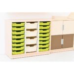 Regal M + 20 diverse Behälter (Quadro 207) – Perfekte Ordnung für jeden Raum: Das Regal M + 20 diverse Behälter (Quadro 207) bringt mit seinen geräumigen Fächern und bruchsicheren, formstabilen Kunststoffbehältern unvergleichliche Ordnung in den alltäglichen Betrieb von Kitas und Schulen. Ideal für die Aufbewahrung und Organisation verschiedener Materialien.