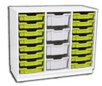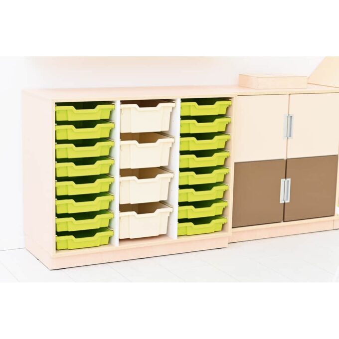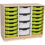 - Inklusive: 4 mittelgroße Kunststoffbehälter (H 15 cm) in Hellgrau, 16 flache Kunststoffbehälter (H 7,5 cm) in Hellgrün