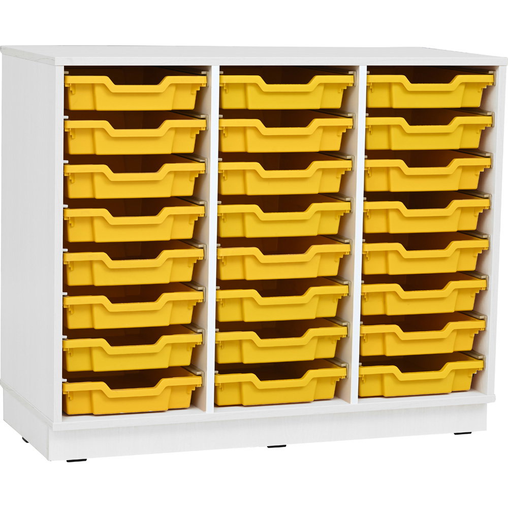 Das Regal wird komplett bestückt mit 24 flachen Kunststoffbehältern in einem leuchtenden Gelb geliefert. Diese Boxen eignen sich hervorragend für die Sortierung von kleinteiligem Material. Die flache Form mit einer Höhe von 7,5 Zentimetern verhindert, dass Gegenstände unübersichtlich übereinanderliegen. So finden Sie immer sofort, was Sie gerade benötigen. - Bruchsichere Qualität für den intensiven Gebrauch