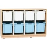 Regal M + 8 Behälter Jumbo, weiß/hellblau (Quadro 193) – Große Ordnung für Kita & Schule