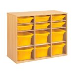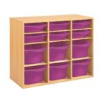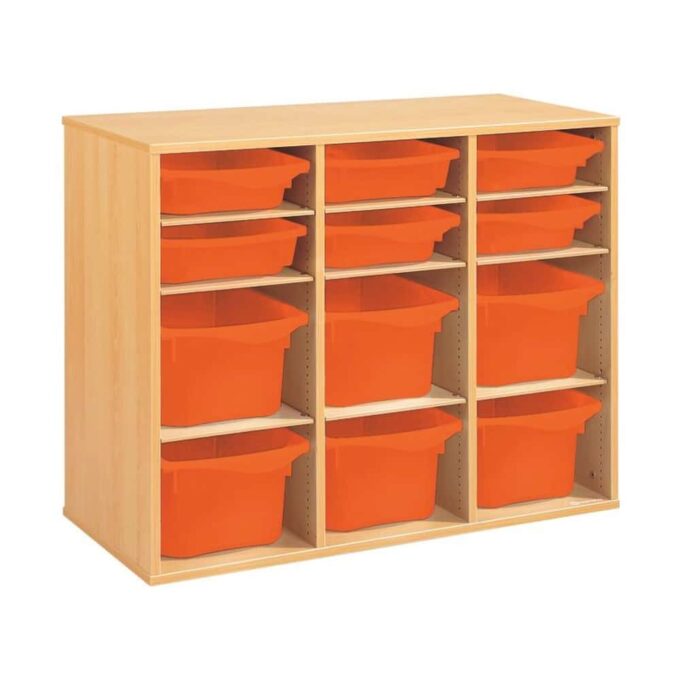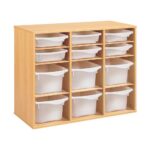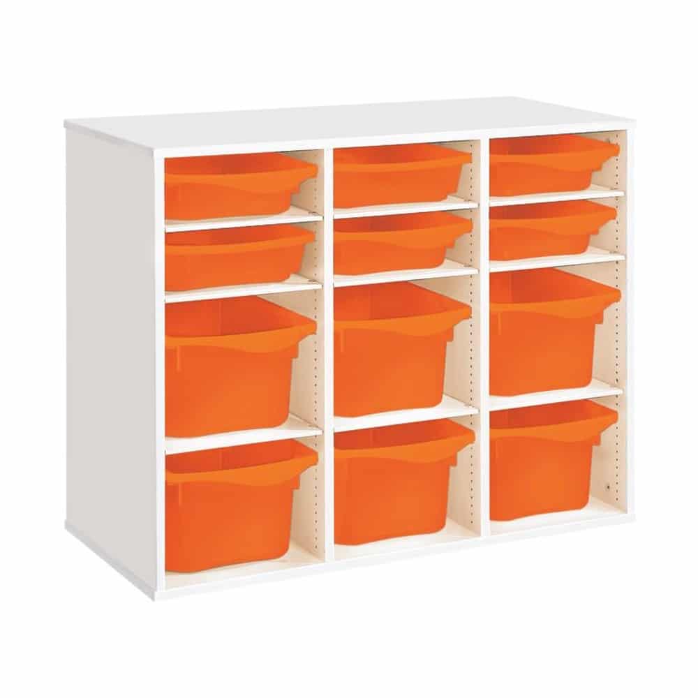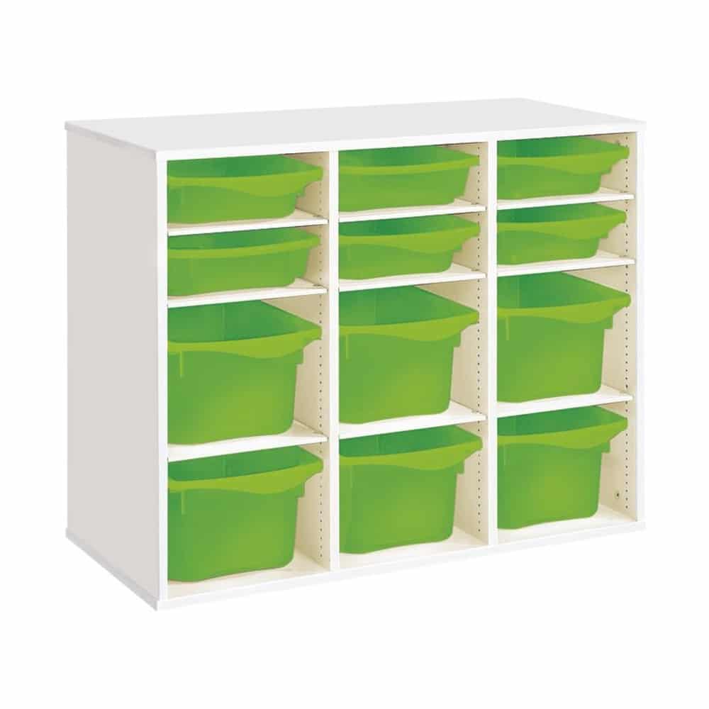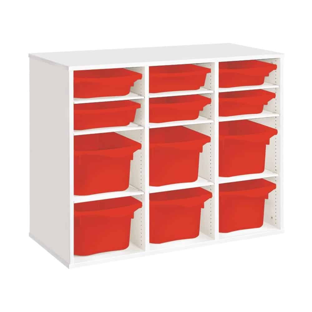 Regal mit Melaminbeschichtung mit 12 Behälter – 9 Regalbretter – Höhe: 81 cm – Länge: 105 cm