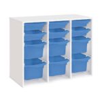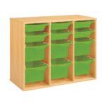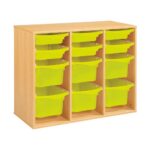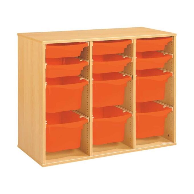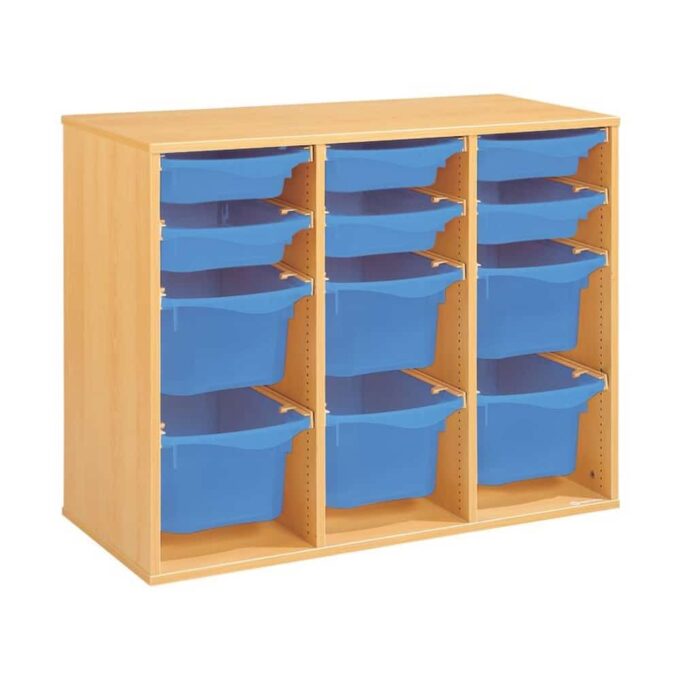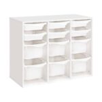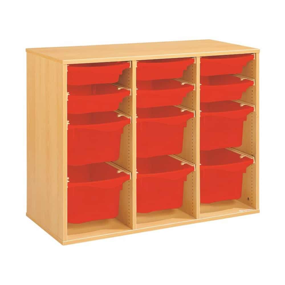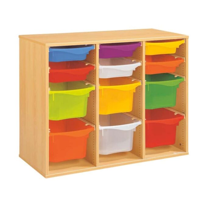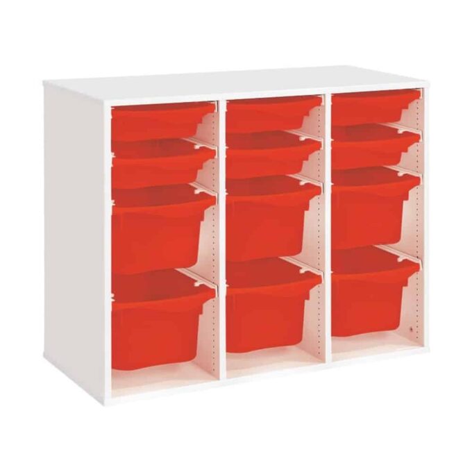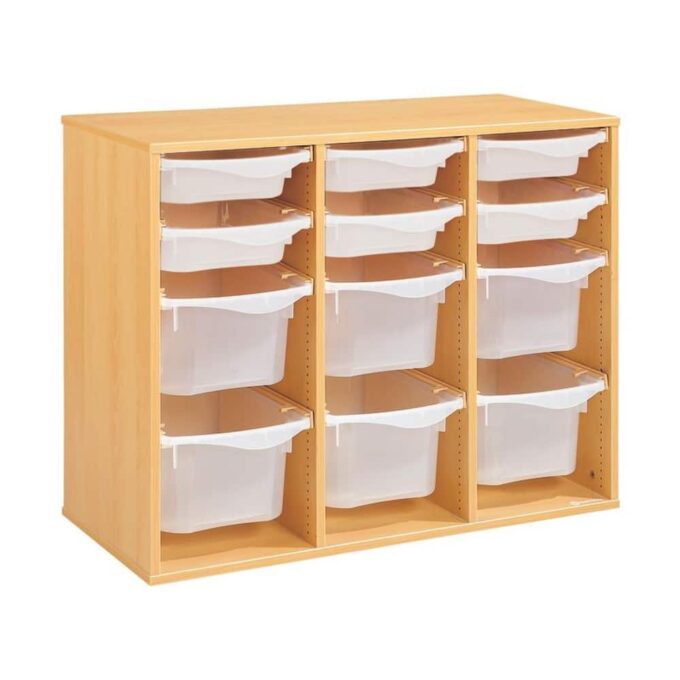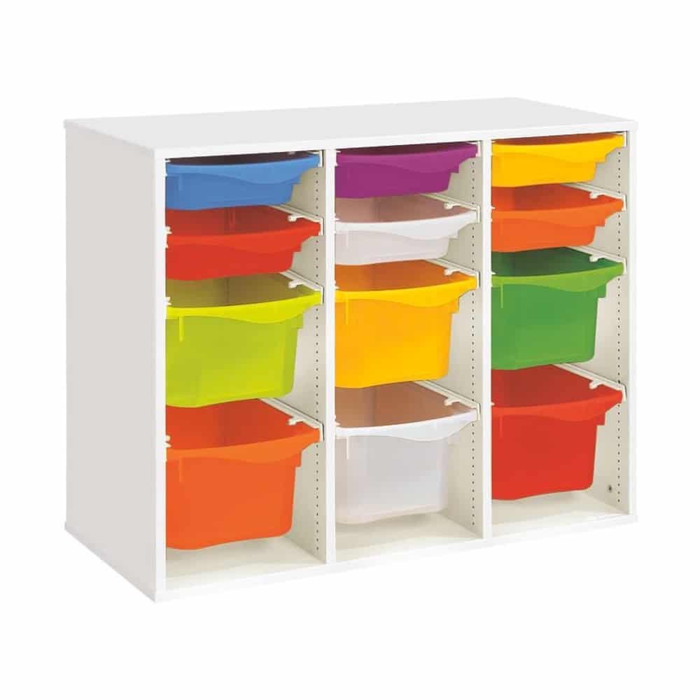 Regal mit Melaminbeschichtung mit 12 Behälter auf Schienen – Höhe: 81 cm – Länge: 105 cm