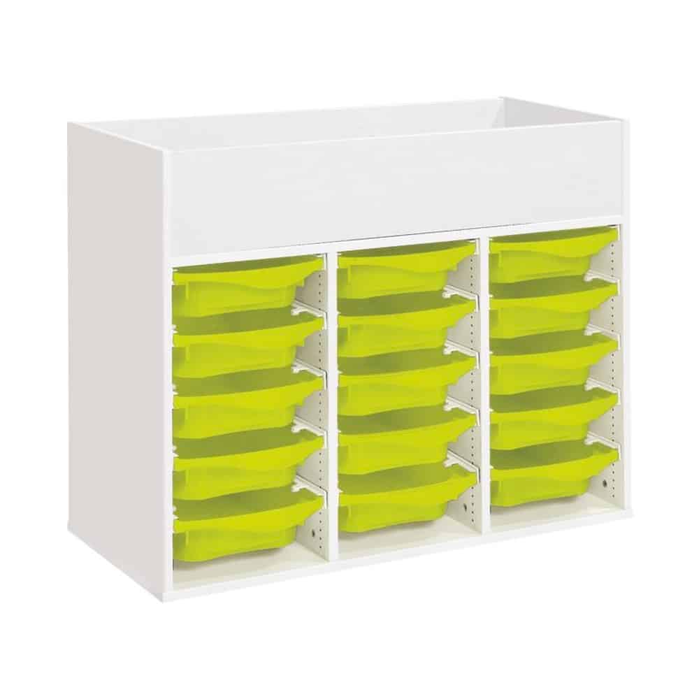 Zweckmäßigkeit, Qualität, Sicherheit! Mit seinen strapazierfähigen Behältern sorgt dieses Möbel für einen modernen und bunten Touch Ihrer Räume. Und um den Boden leichter reinigen zu können, wählen Sie unsere Fußteile mit Gleitern oder Rollen!