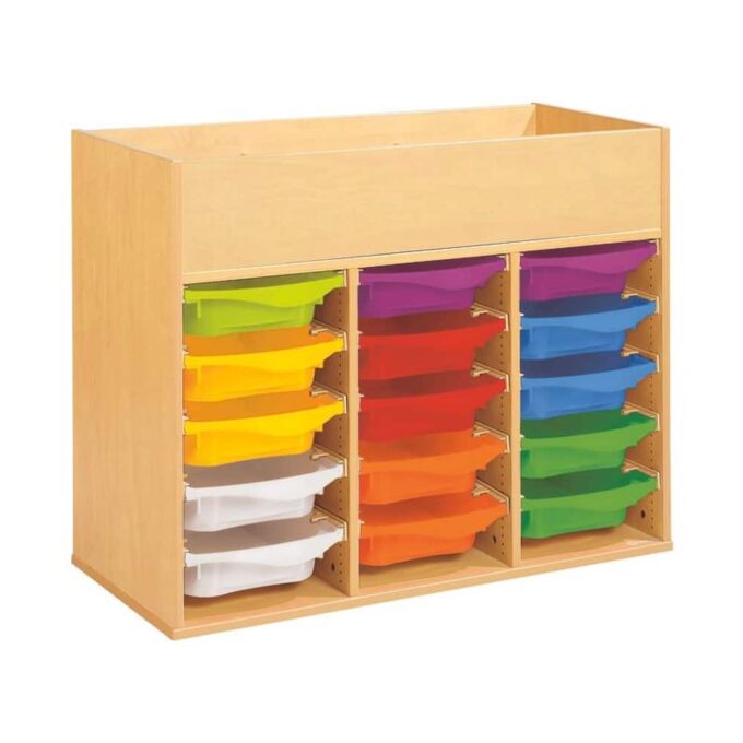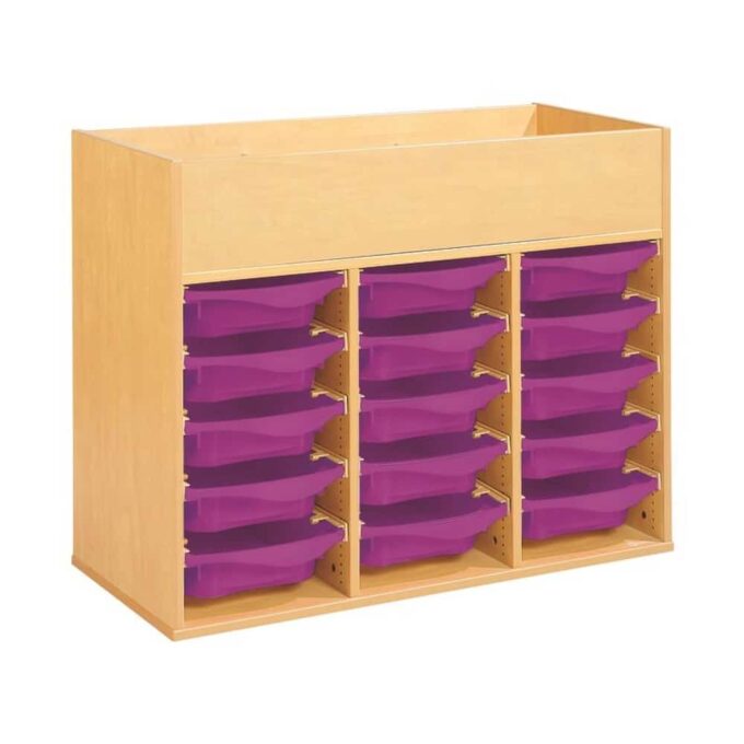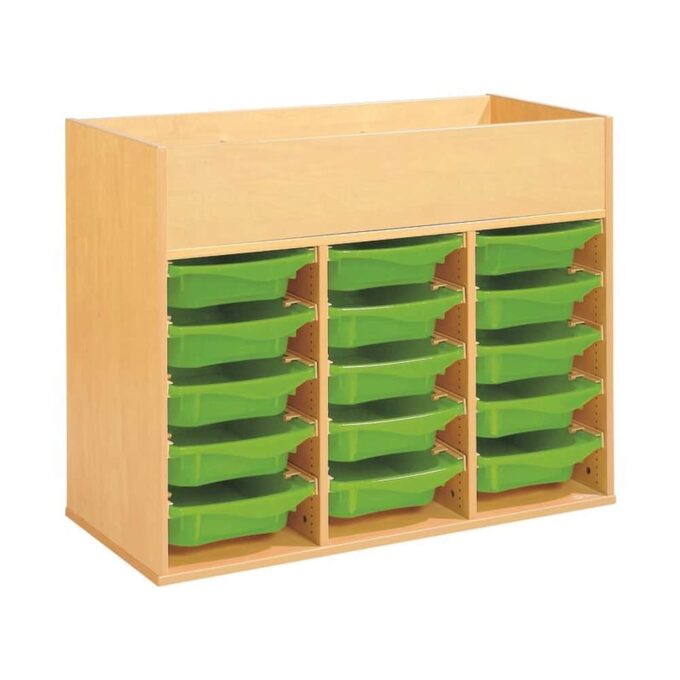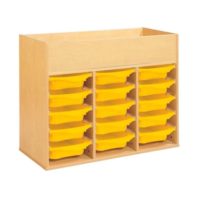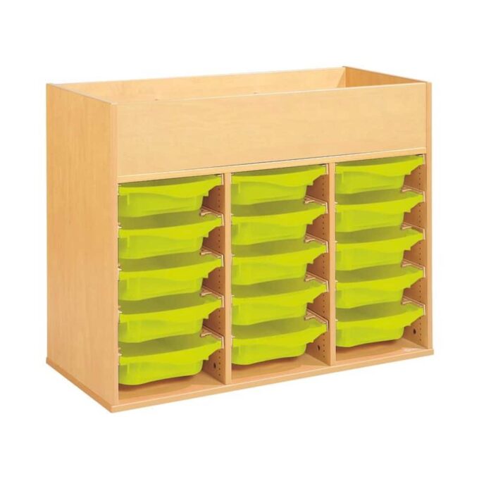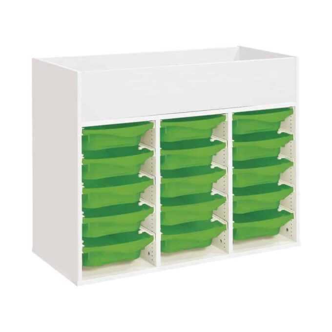 Regal mit Melaminbeschichtung mit 15 Behälter auf Schienen mit Zugriff oben – Höhe: 81 cm – Länge: 105 cm