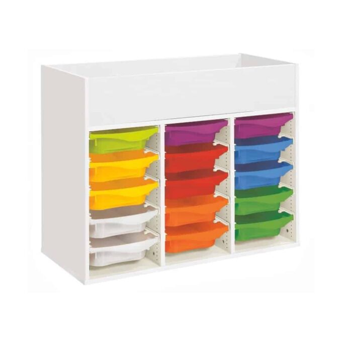 Zweckmäßigkeit, Qualität, Sicherheit! Mit seinen strapazierfähigen Behältern sorgt dieses Möbel für einen modernen und bunten Touch Ihrer Räume. Und um den Boden leichter reinigen zu können, wählen Sie unsere Fußteile mit Gleitern oder Rollen!