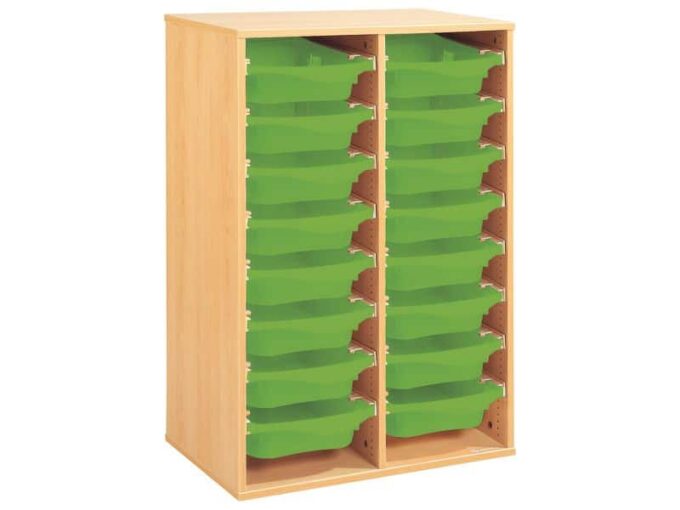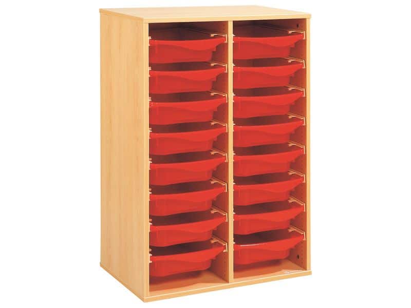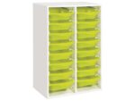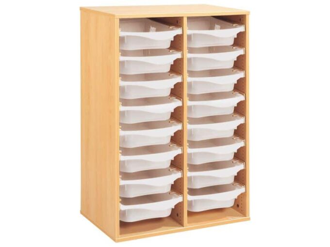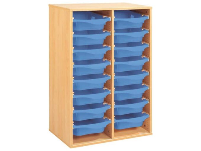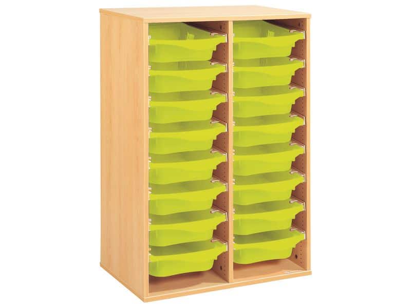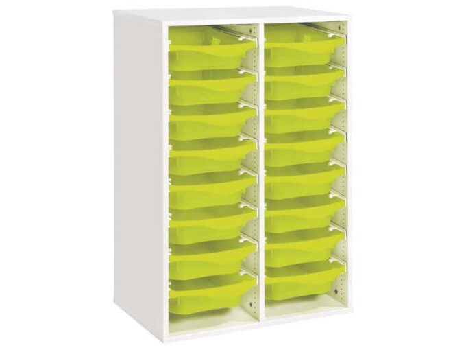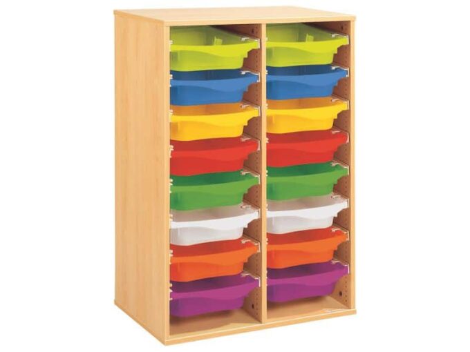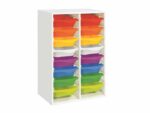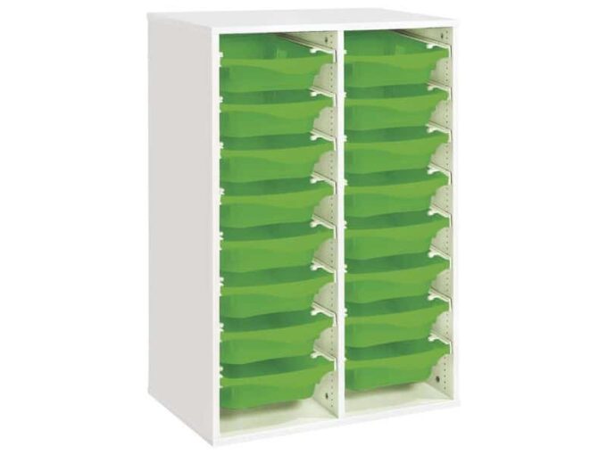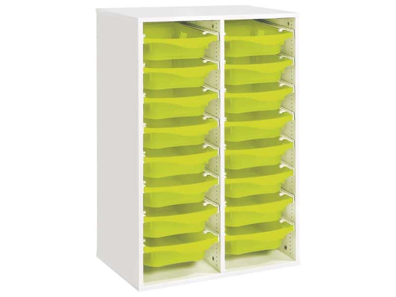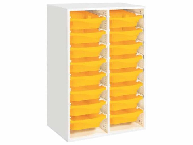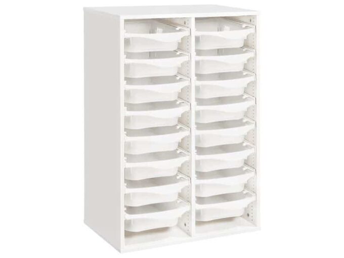Regal mit Melaminbeschichtung mit 16 Behälter auf Schienen – Höhe: 102 cm – Länge: 70,5 cm