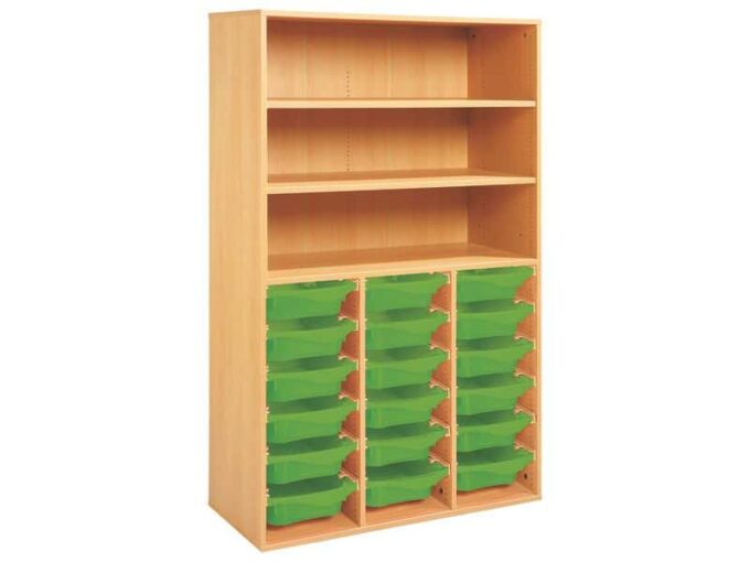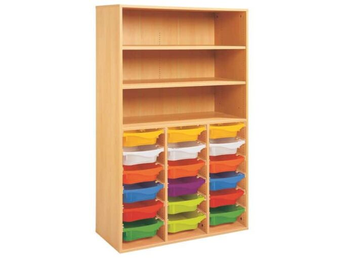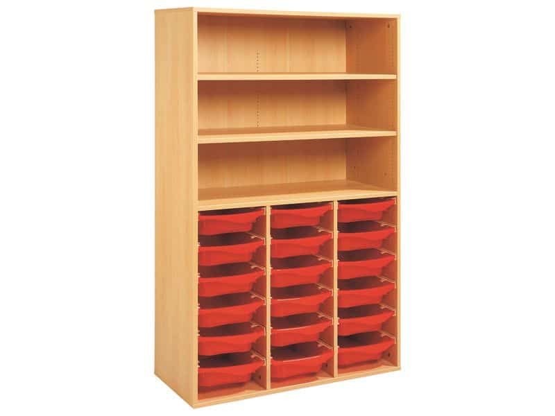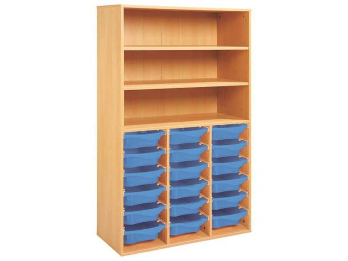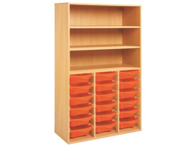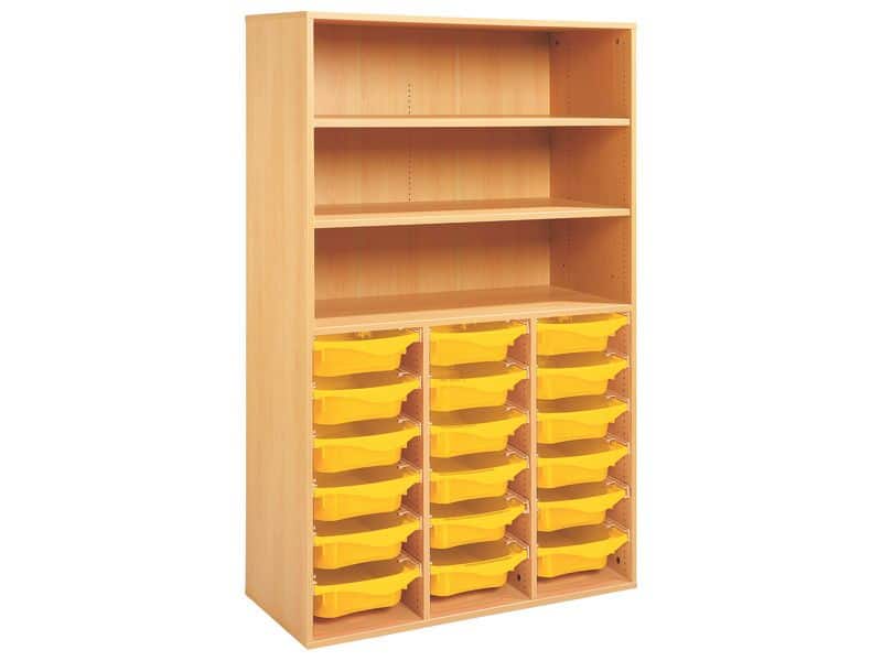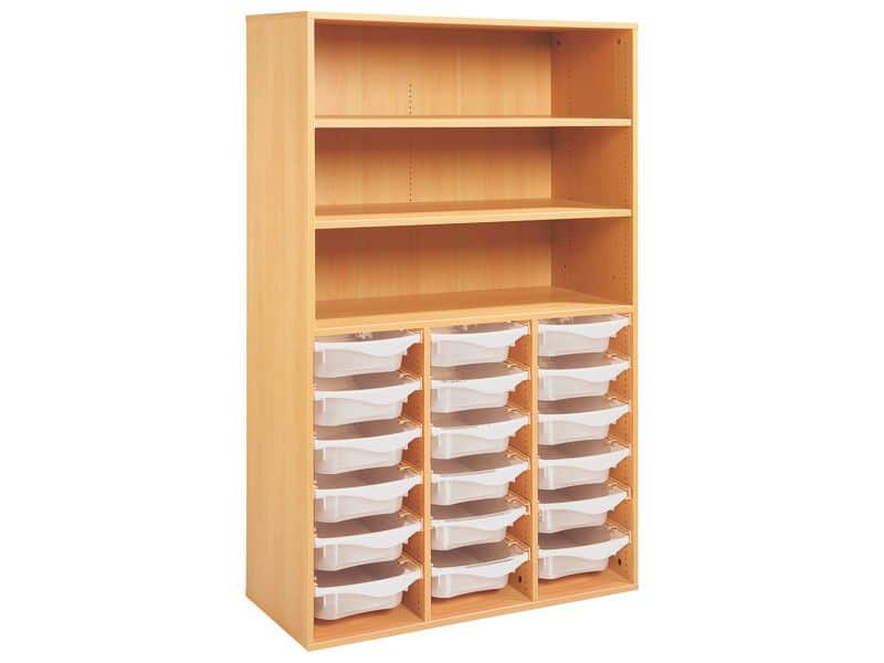 Technische Daten Regal mit Melaminbeschichtung mit 18 Behälter auf Schienen- 3 Regalbretter – Höhe: 162 cm – Länge: 105 cm