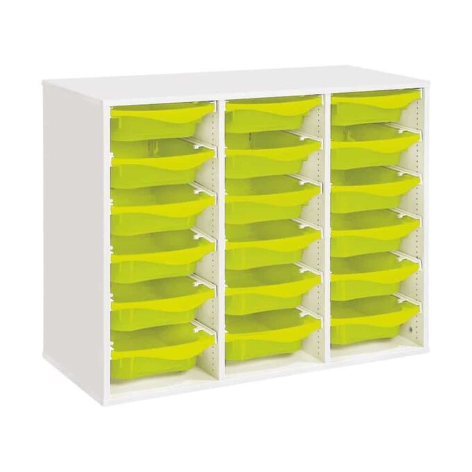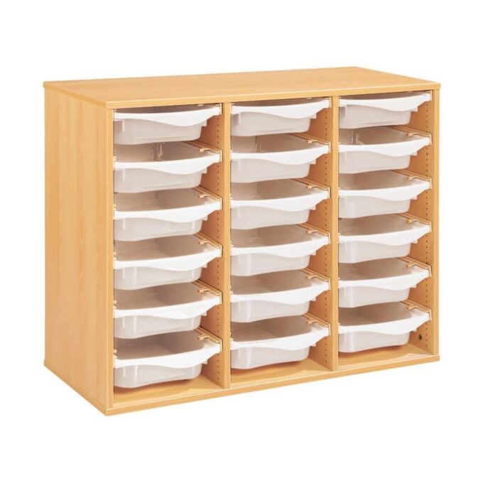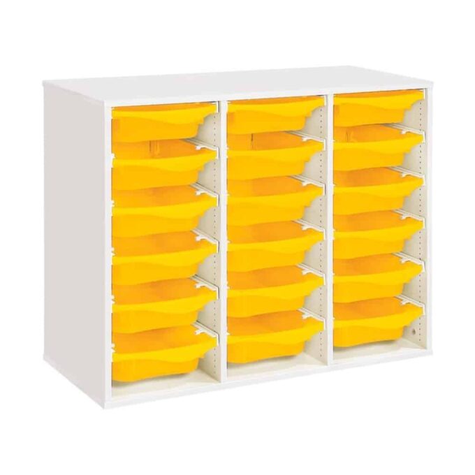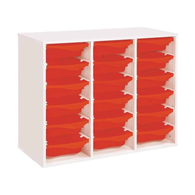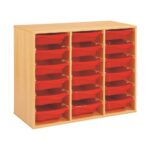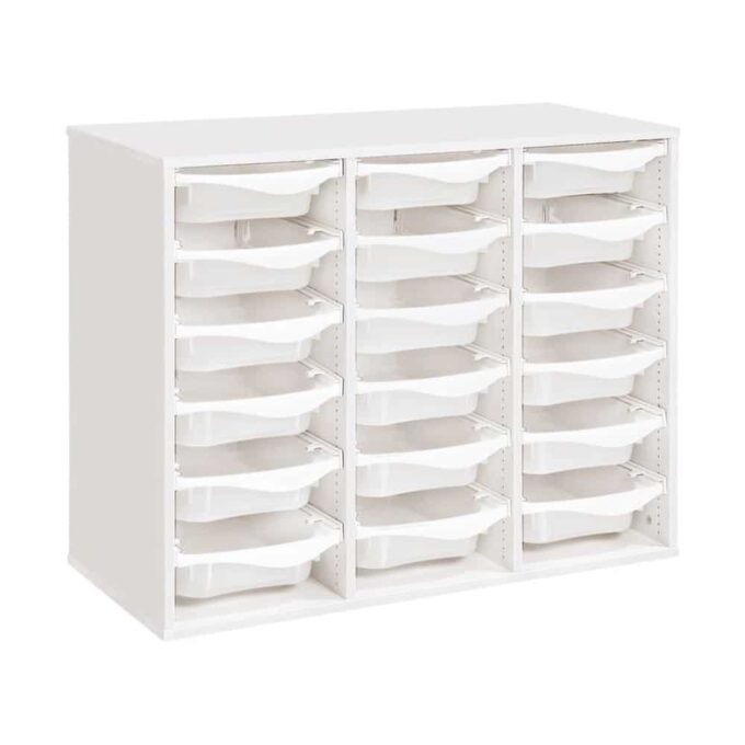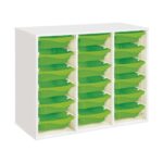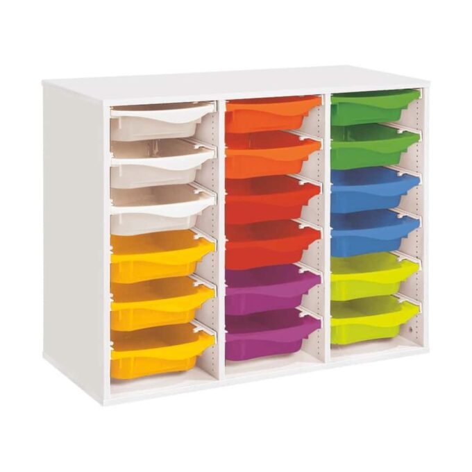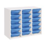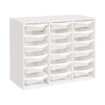 Regal mit Melaminbeschichtung mit 18 Behälter auf Schienen – Höhe: 81 cm – Länge: 105 cm