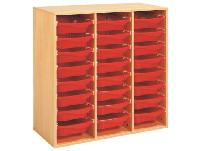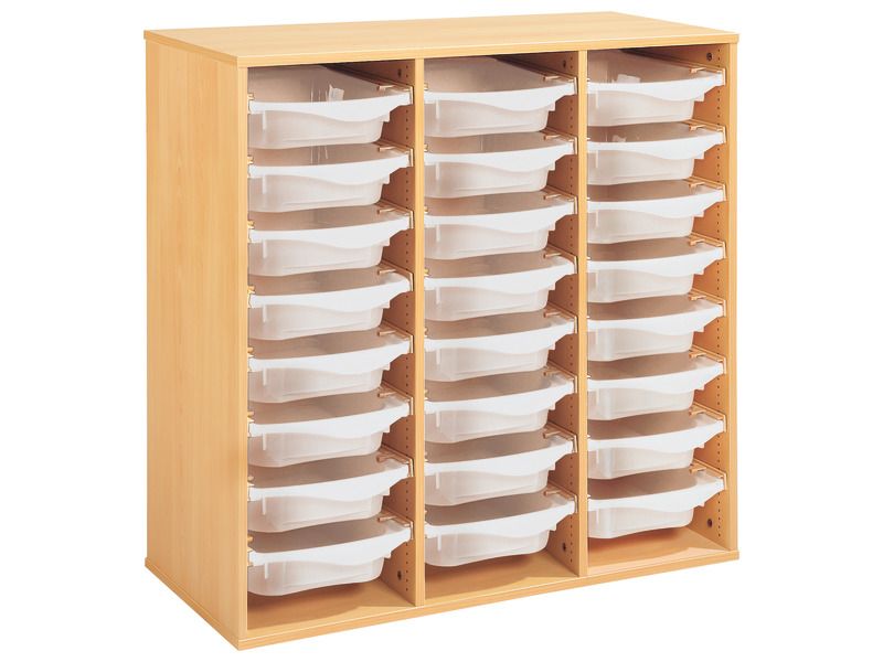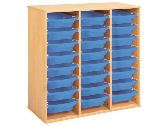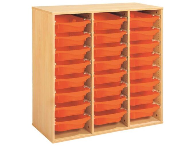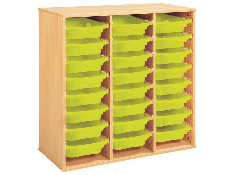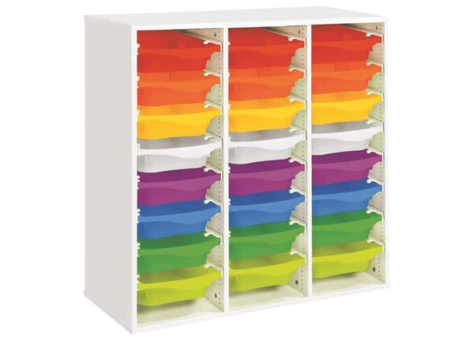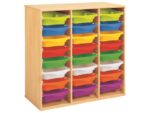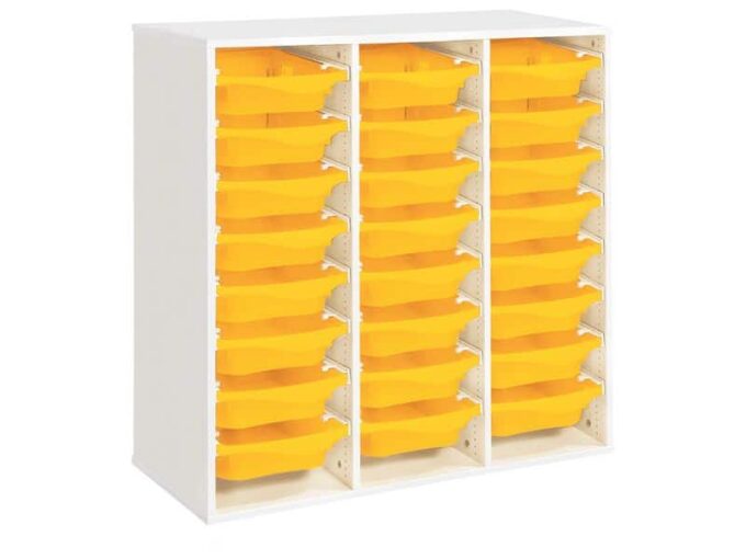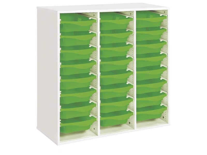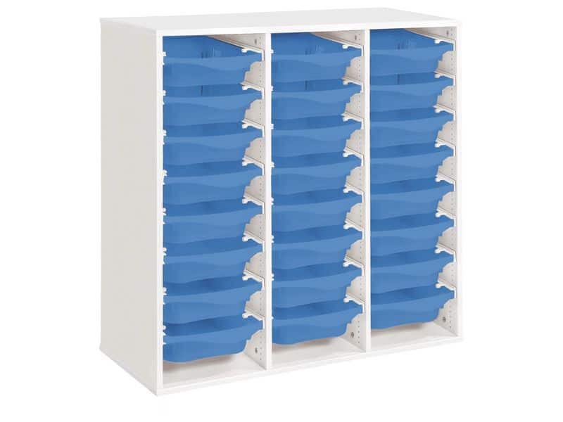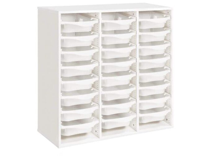 Regal mit Melaminbeschichtung mit 24 Behälter auf Schienen – Höhe: 102 cm – Länge: 105 cm