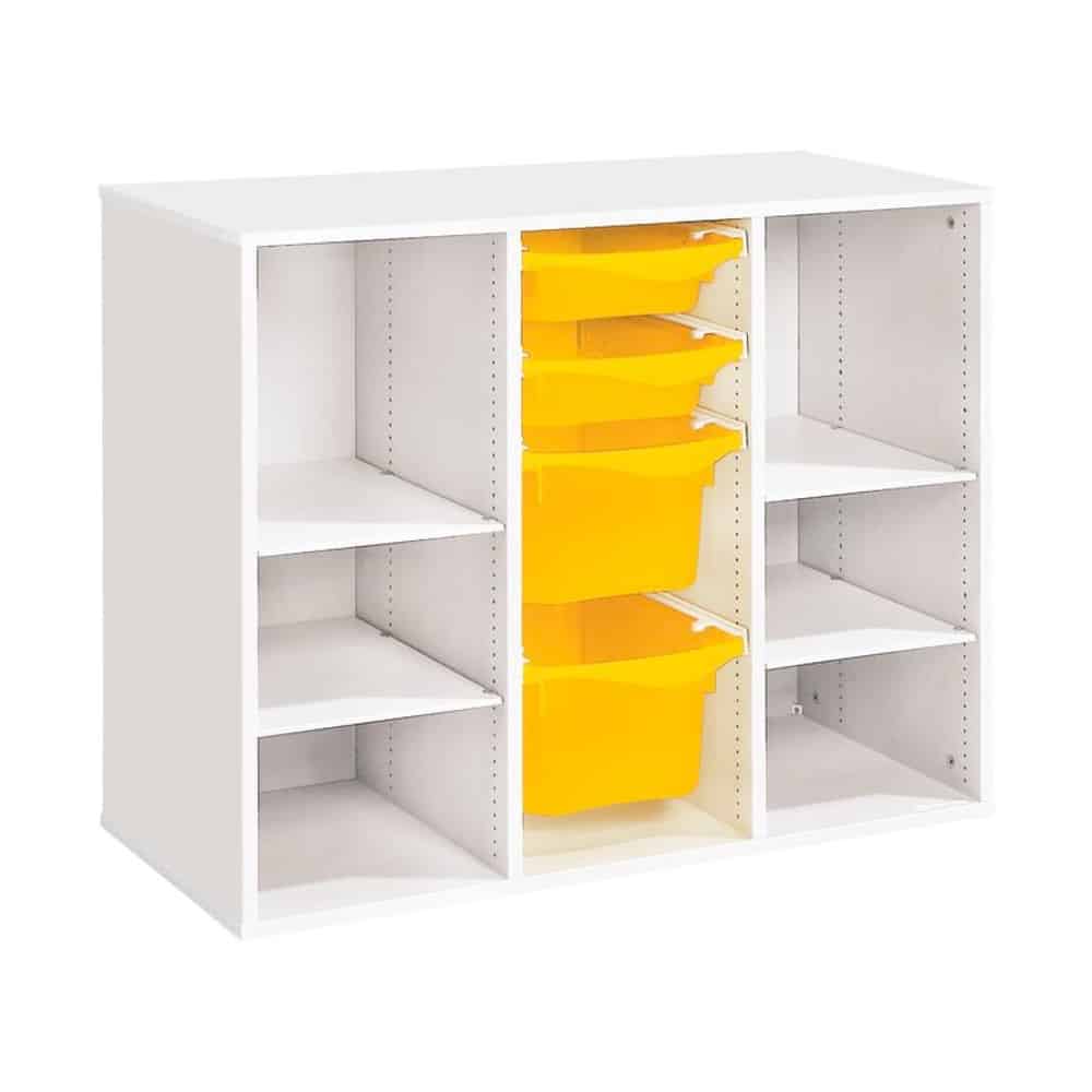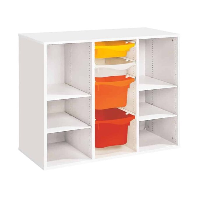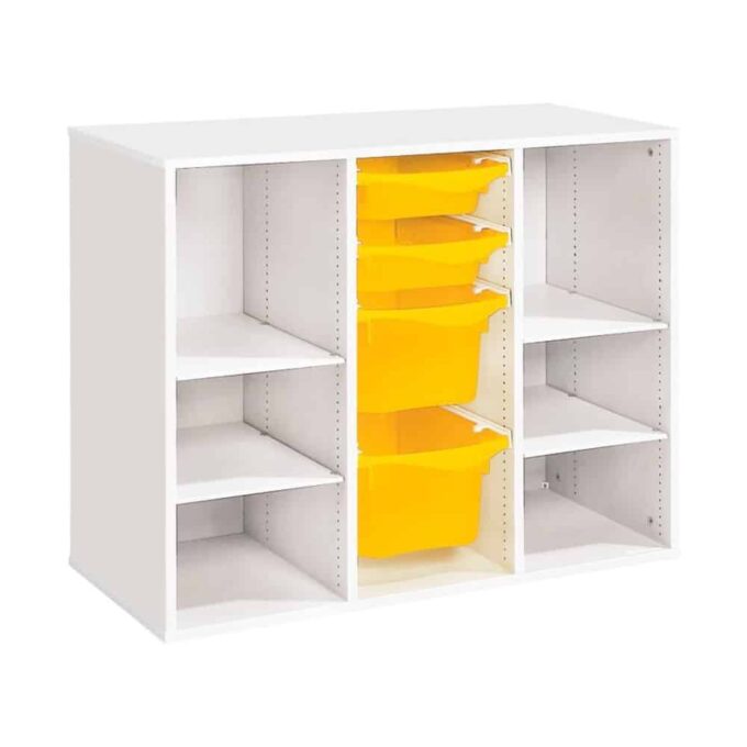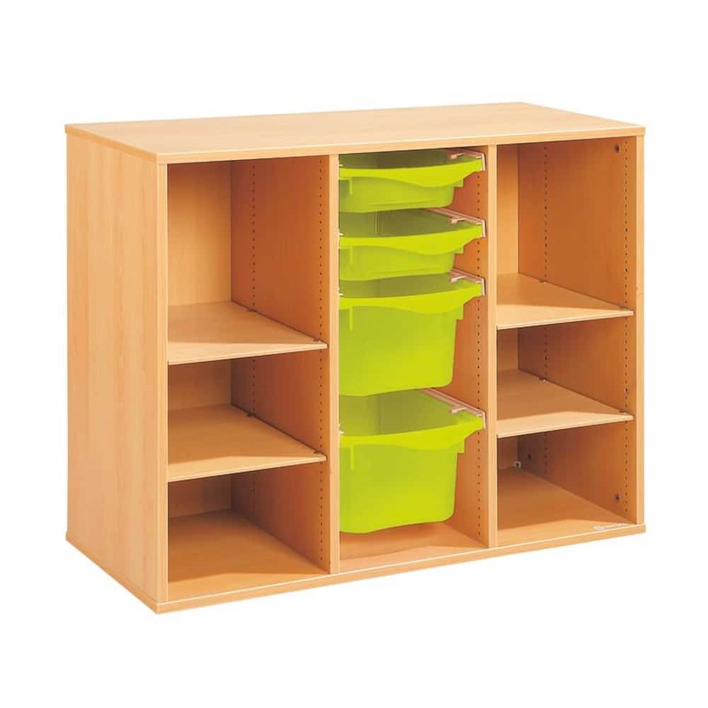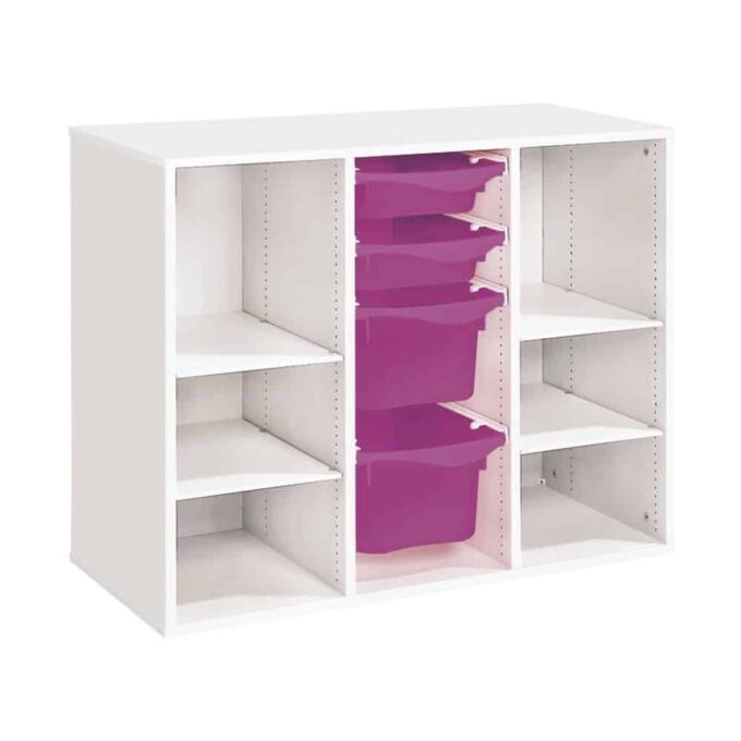 Zweckmäßigkeit, Qualität, Sicherheit! Mit seinen strapazierfähigen Behältern sorgt dieses Möbel für einen modernen und bunten Touch Ihrer Räume. Und um den Boden leichter reinigen zu können, wählen Sie unsere Fußteile mit Gleitern oder Rollen!