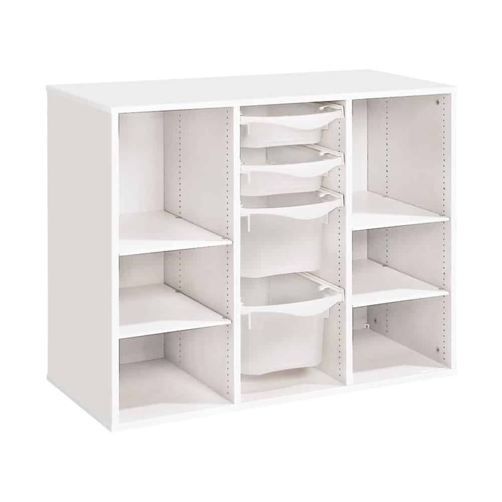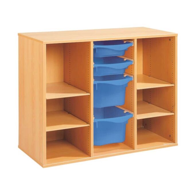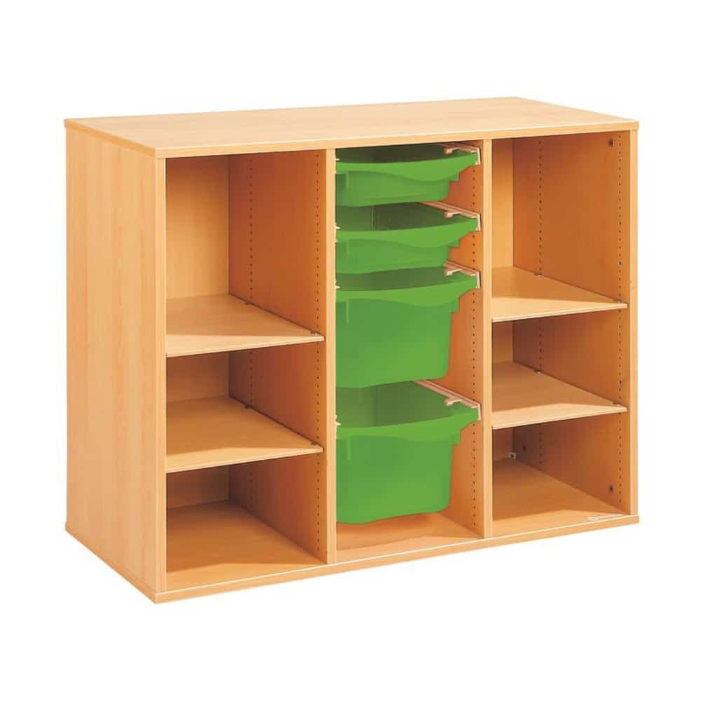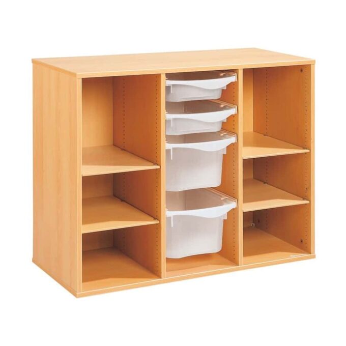 Zweckmäßigkeit, Qualität, Sicherheit! Mit seinen strapazierfähigen Behältern sorgt dieses Möbel für einen modernen und bunten Touch Ihrer Räume. Und um den Boden leichter reinigen zu können, wählen Sie unsere Fußteile mit Gleitern oder Rollen!