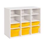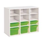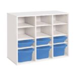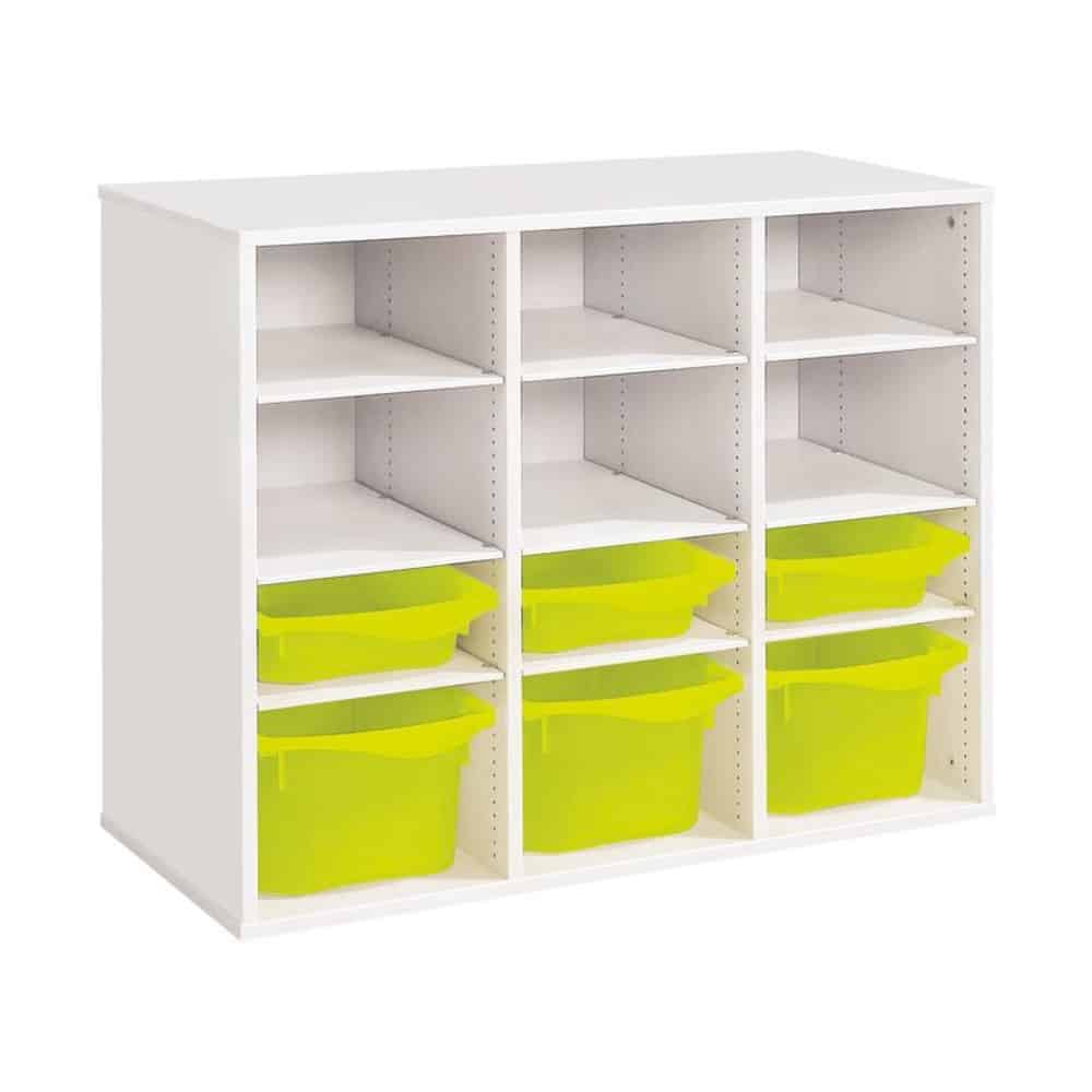 Regal mit Melaminbeschichtung mit 6 Behälter – 9 Regalbretter – Höhe: 81 cm – Länge: 105 cm
