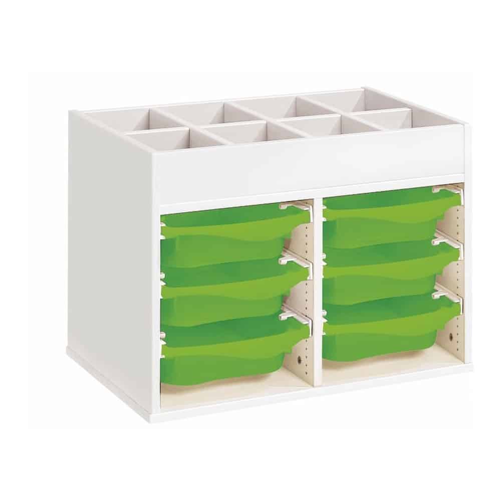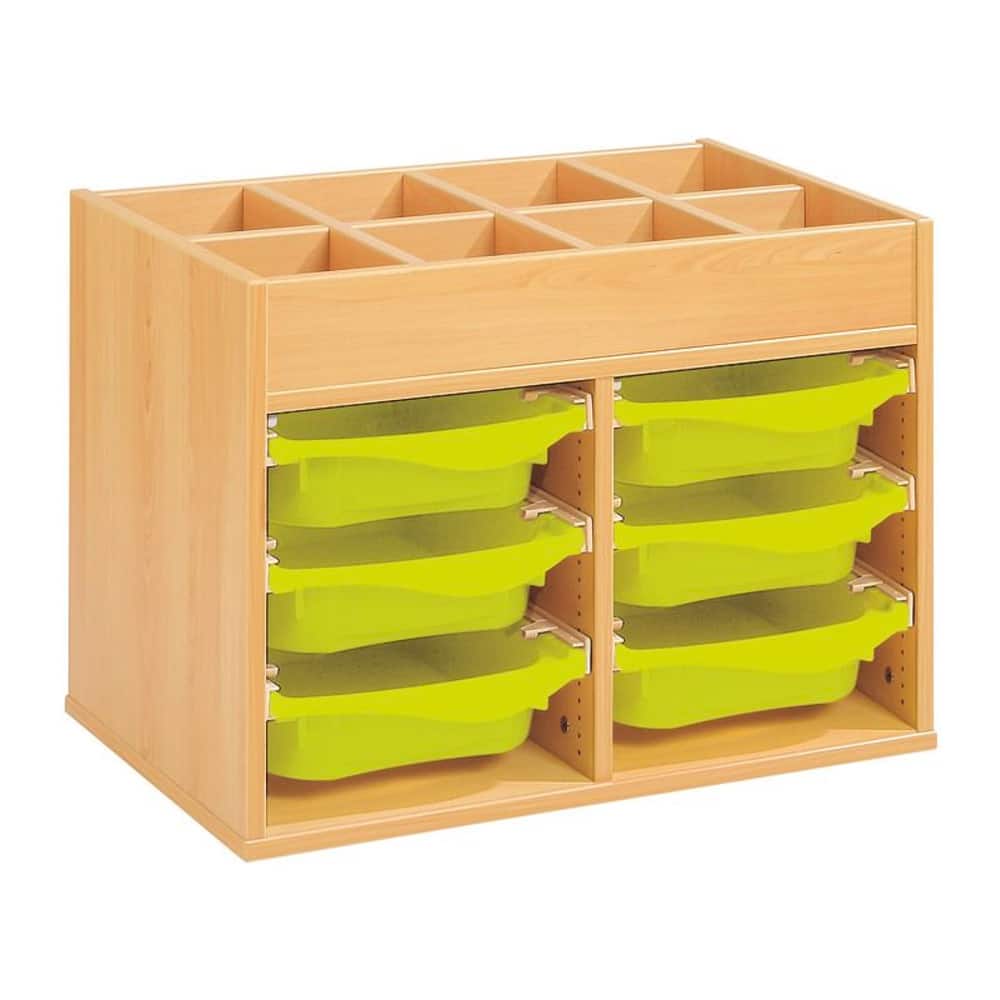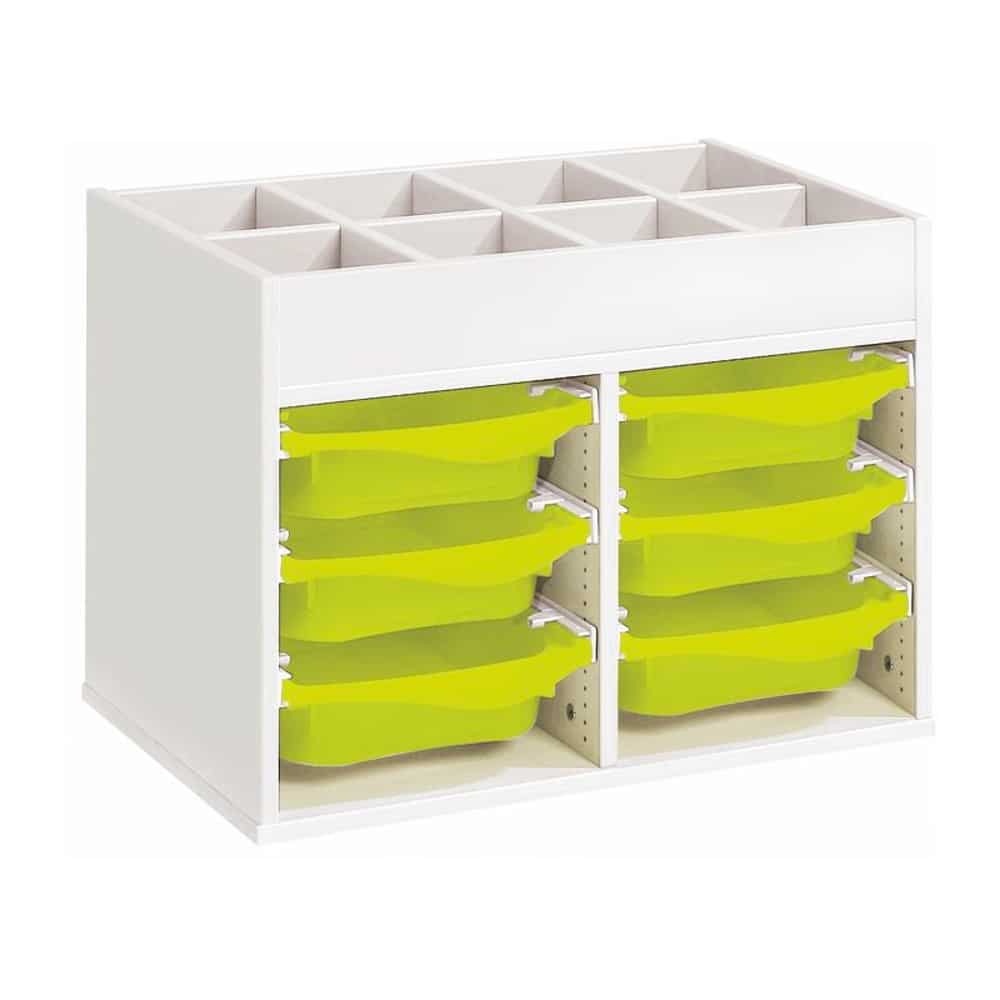 Zweckmäßigkeit, Qualität, Sicherheit! Mit seinen strapazierfähigen Behältern sorgt dieses Möbel für einen modernen und bunten Touch Ihrer Räume. Und um den Boden leichter reinigen zu können, wählen Sie unsere Fußteile mit Gleitern oder Rollen!