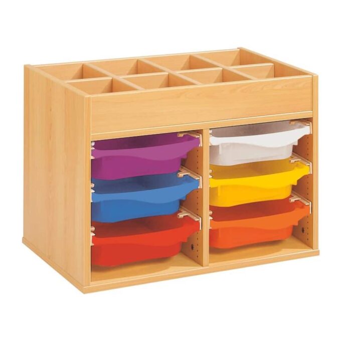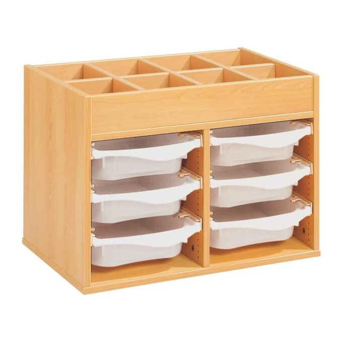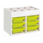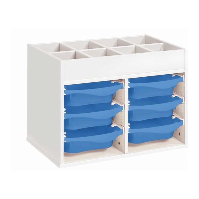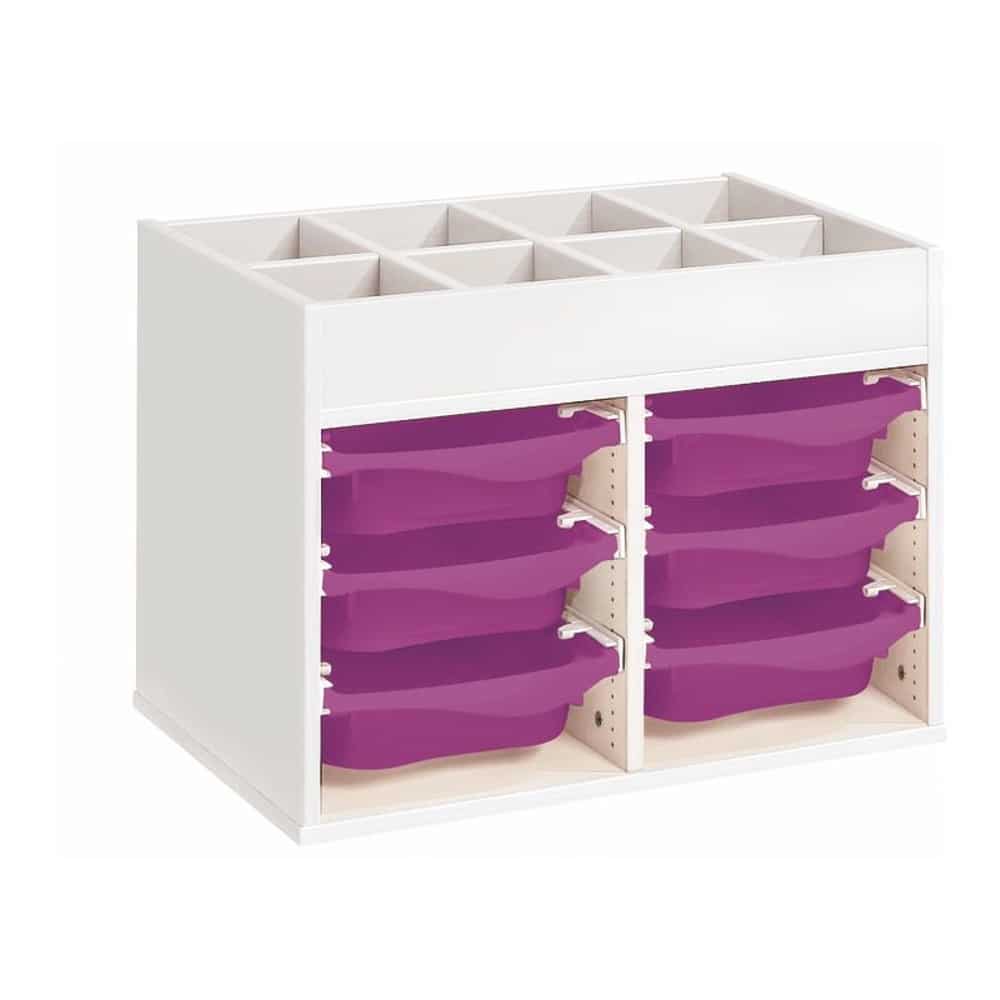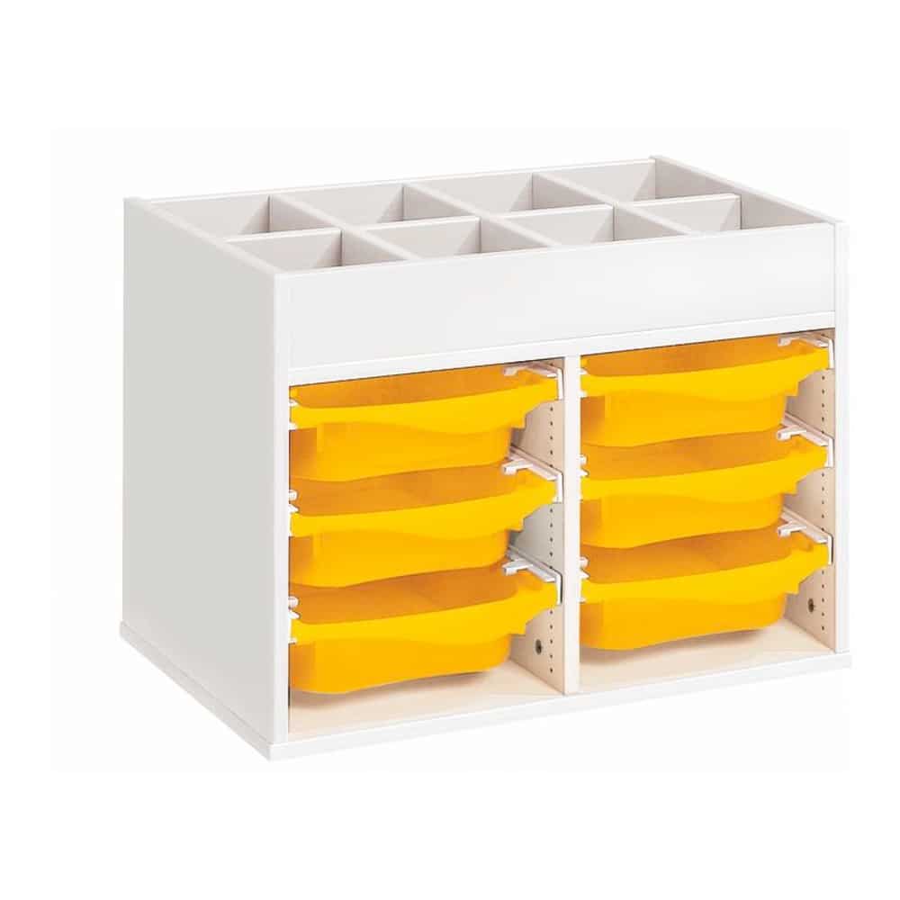 Zweckmäßigkeit, Qualität, Sicherheit! Mit seinen strapazierfähigen Behältern sorgt dieses Möbel für einen modernen und bunten Touch Ihrer Räume. Und um den Boden leichter reinigen zu können, wählen Sie unsere Fußteile mit Gleitern oder Rollen!