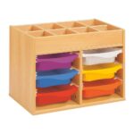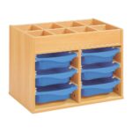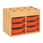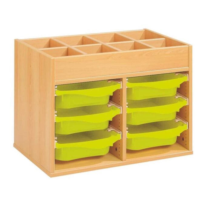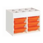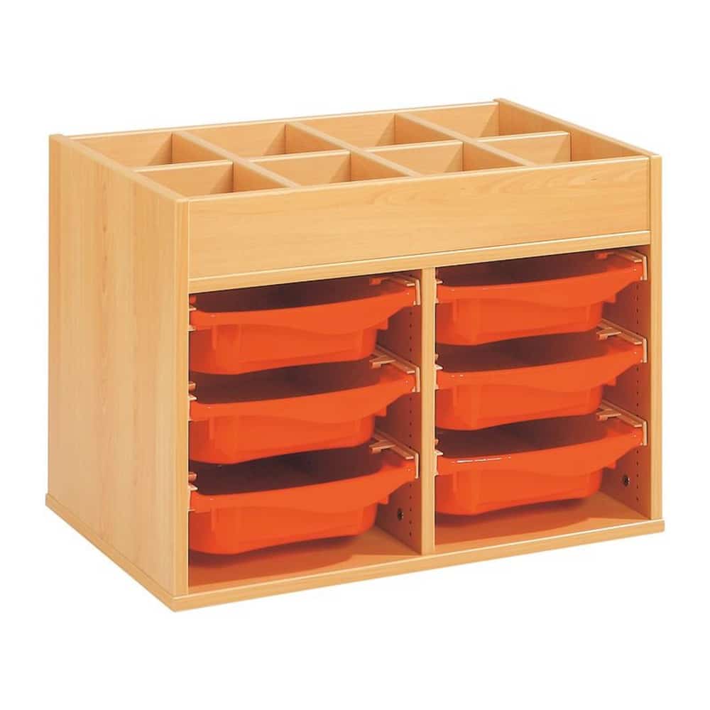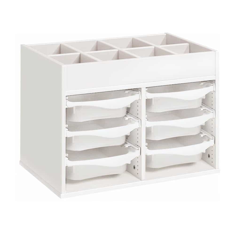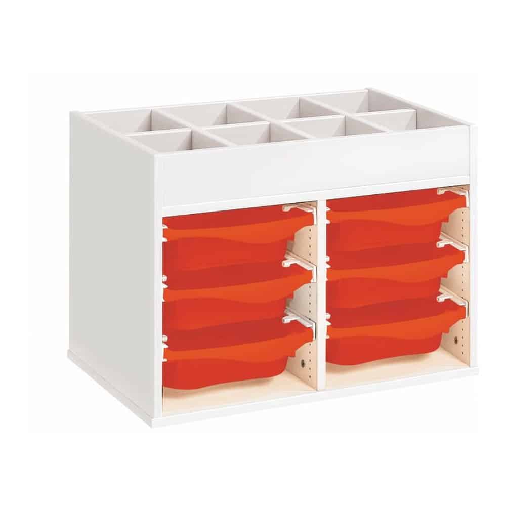 Regal mit Melaminbeschichtung mit 6 Behälter auf Schienen mit Zugriff oben – Höhe: 81 cm – Länge: 105 cm