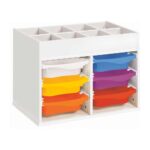 - Hergestellt aus: melaminbeschichtetes Holz (Möbel) und Polyethylen (Behälter).