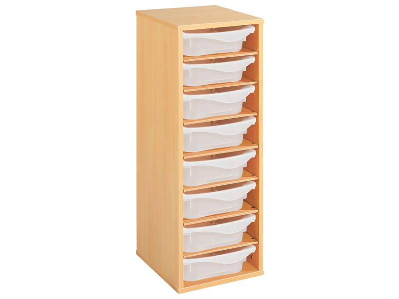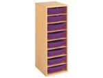Regal mit Melaminbeschichtung mit 8 Behälter – 7 Regalbretter – Höhe: 102 cm – Länge: 36 cm für KiTas & Kindergärten