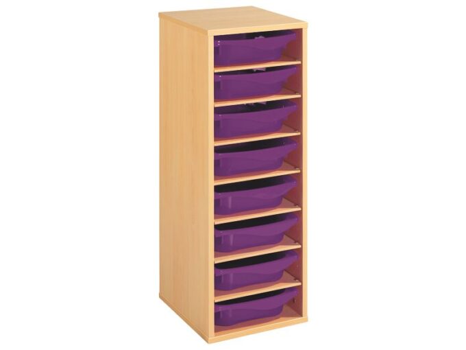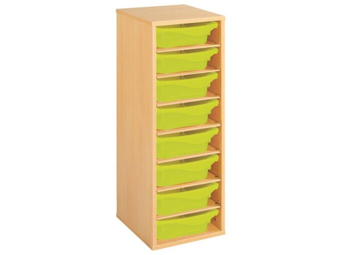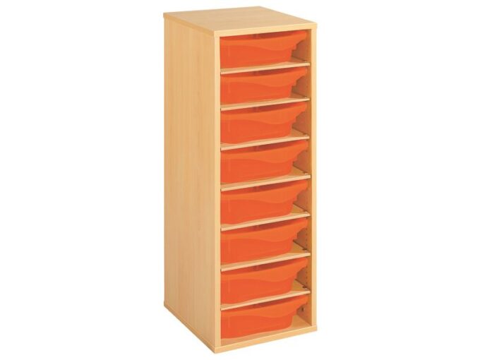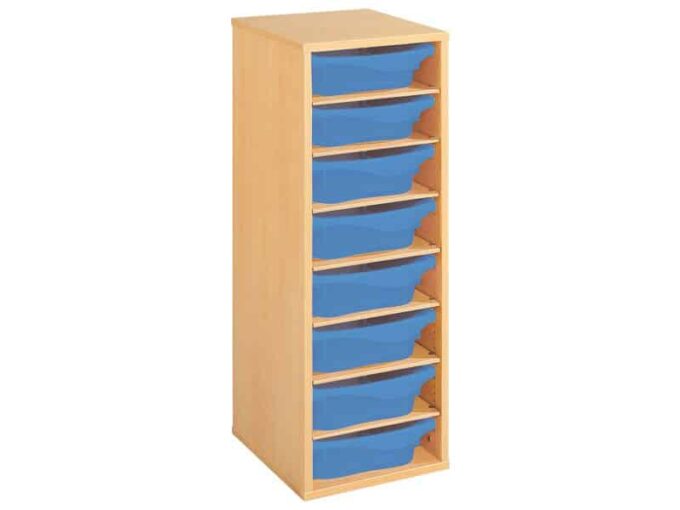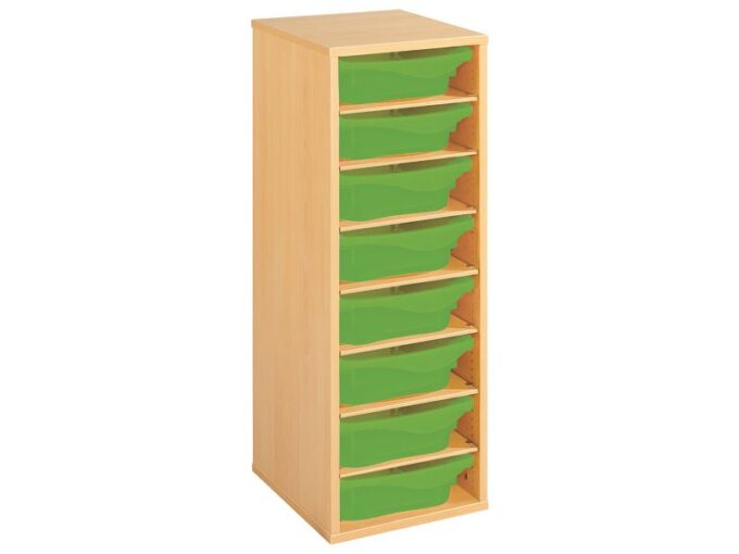 Regal mit Melaminbeschichtung mit 8 Behälter – 7 Regalbretter – Höhe: 102 cm – Länge: 36 cm für KiTas & Kindergärten