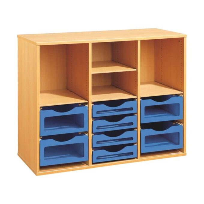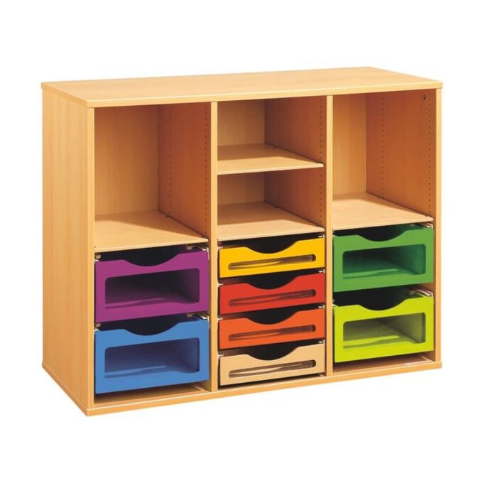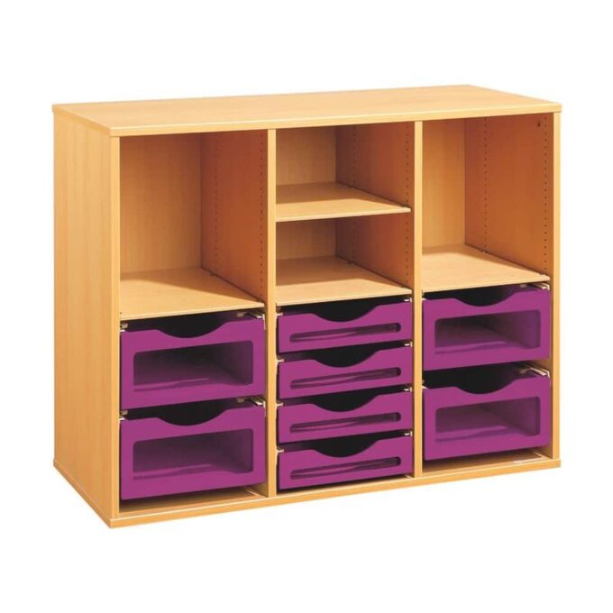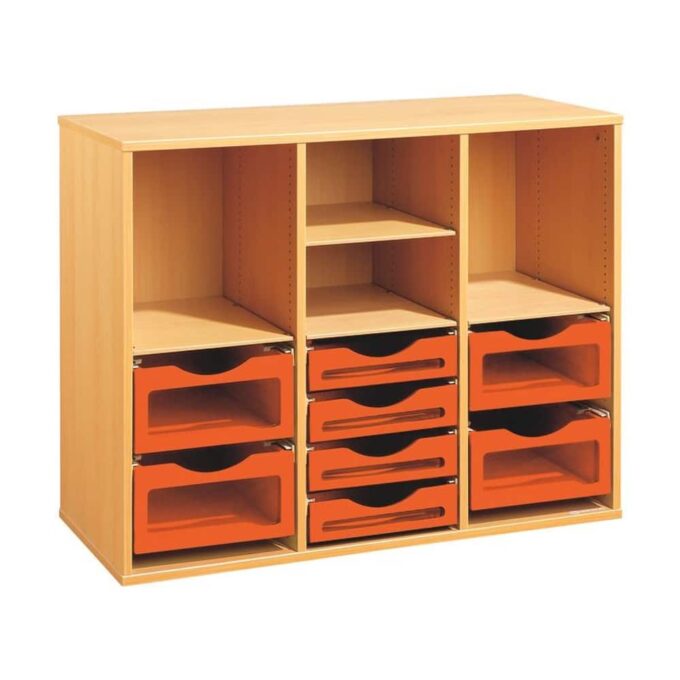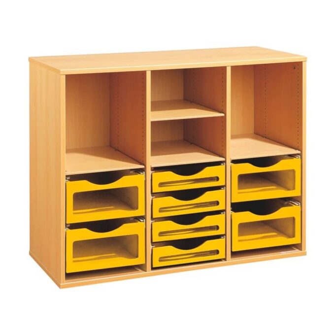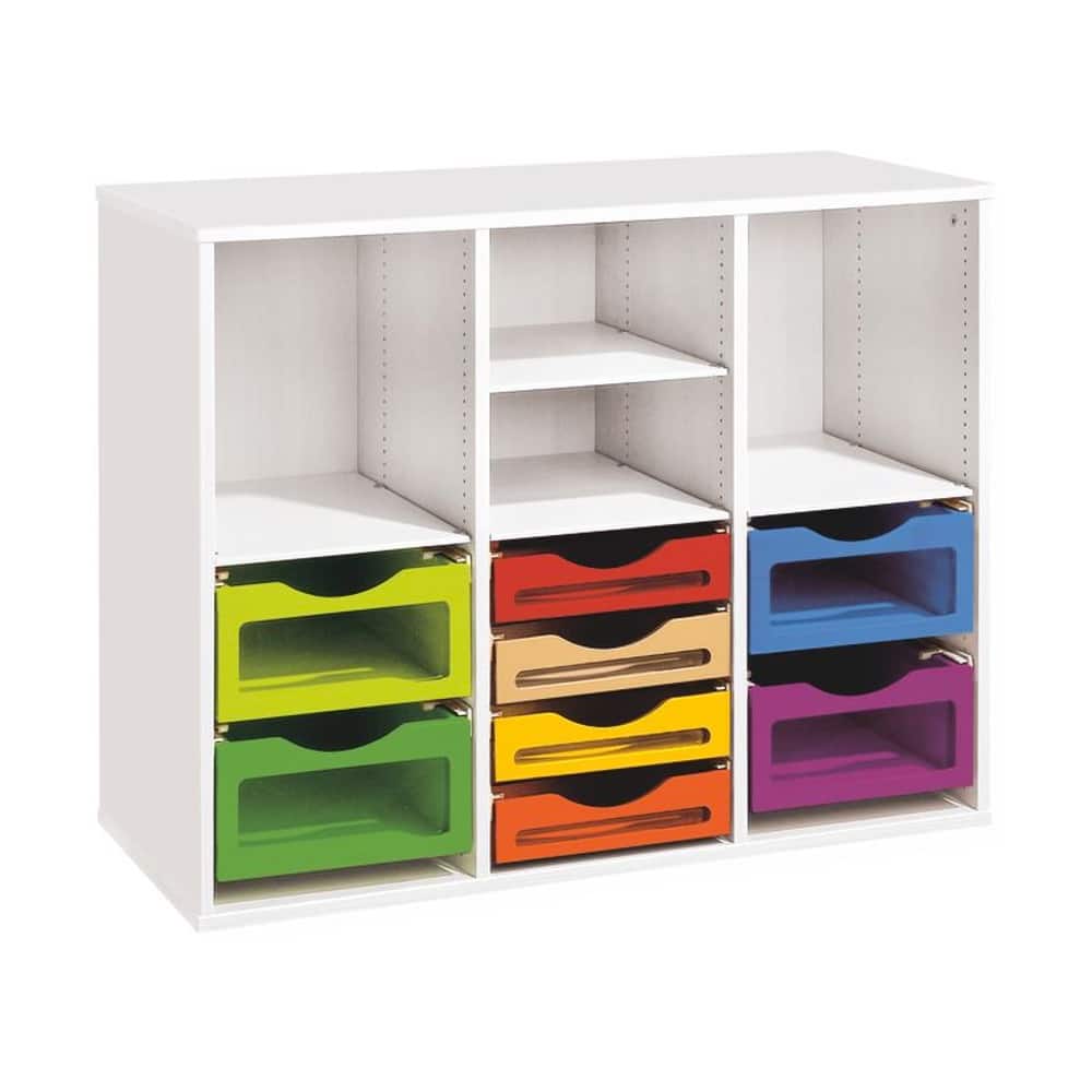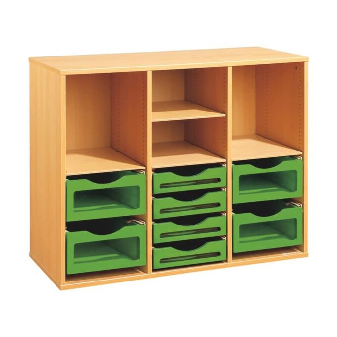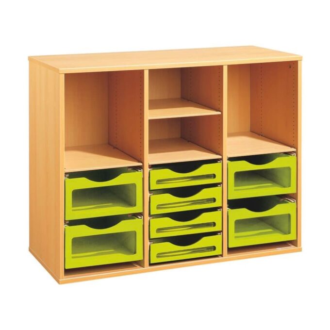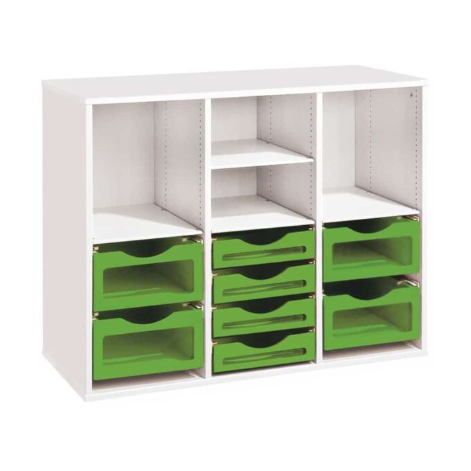 Zweckmäßigkeit, Qualität, Sicherheit! Mit seinen strapazierfähigen Behältern sorgt dieses Möbel für einen modernen und bunten Touch Ihrer Räume. Und um den Boden leichter reinigen zu können, wählen Sie unsere Fußteile mit Gleitern oder Rollen!
