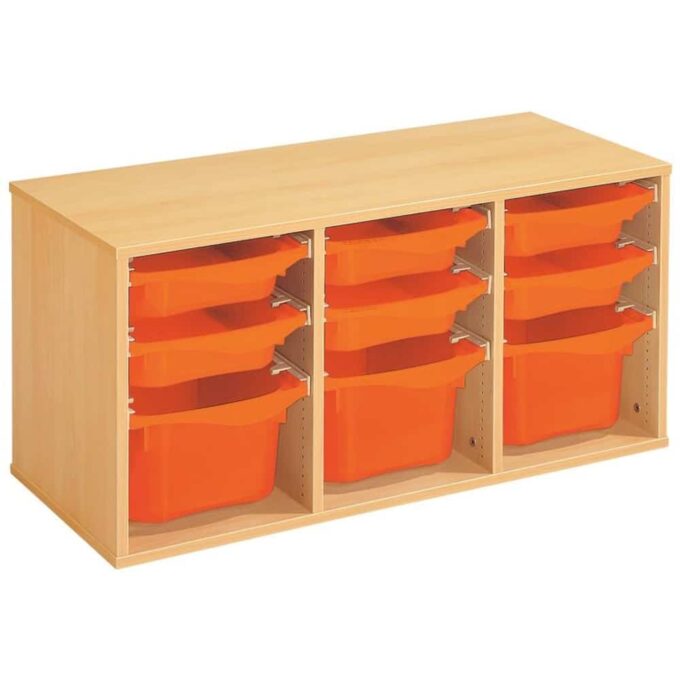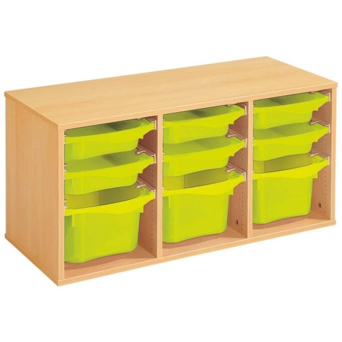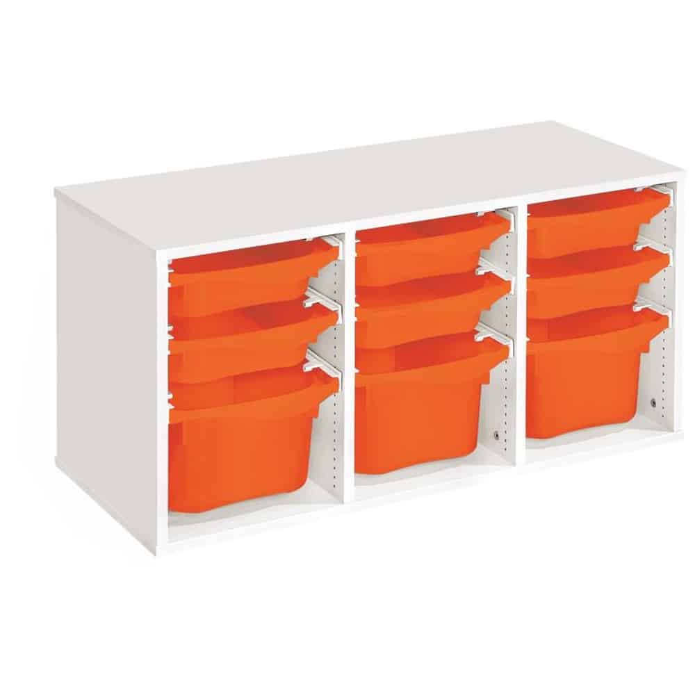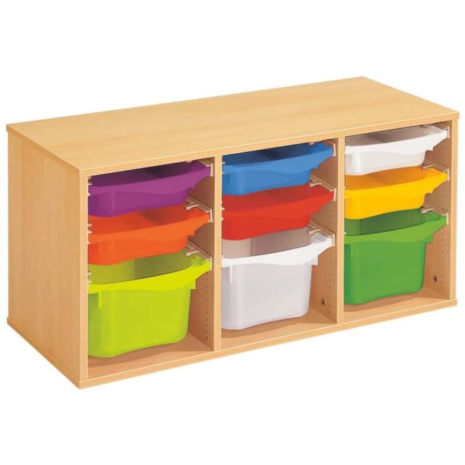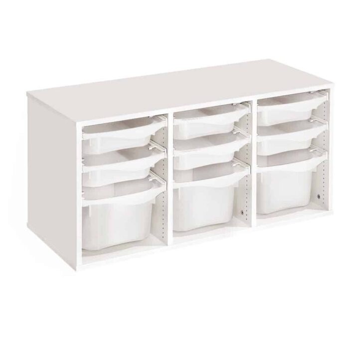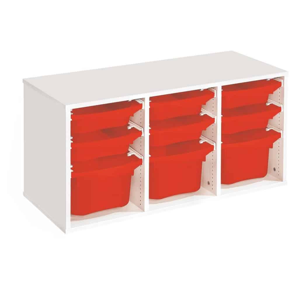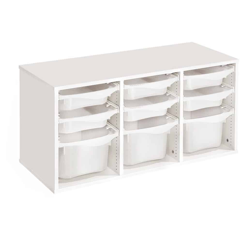 Regal mit Melaminbeschichtung mit 9 Behälter auf Schienen – Höhe: 51 cm – Länge: 105 cm