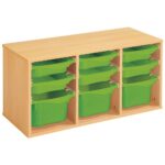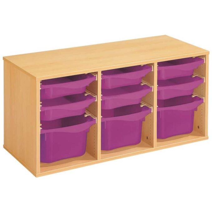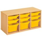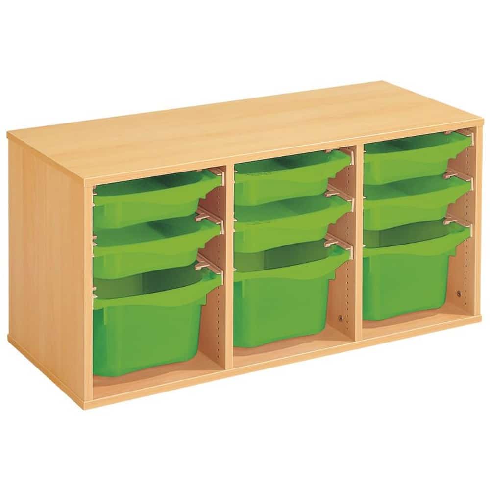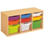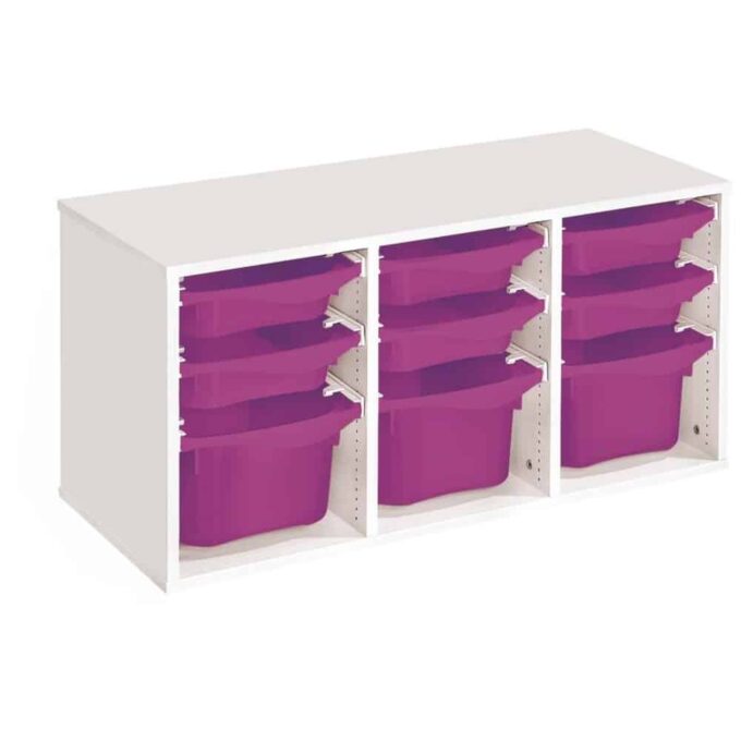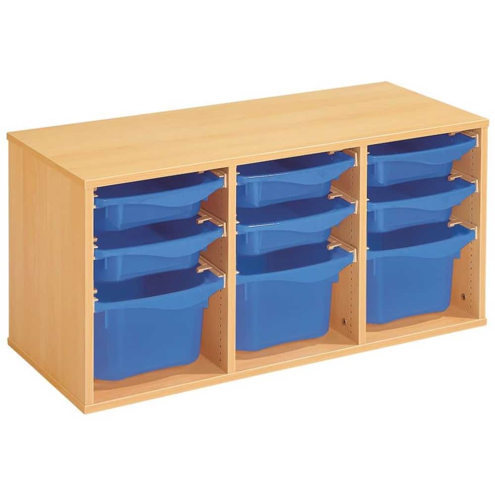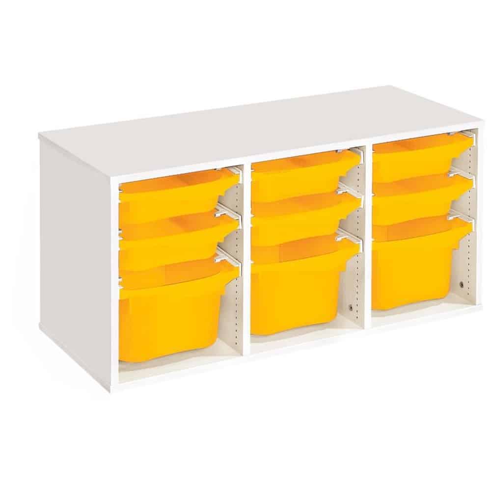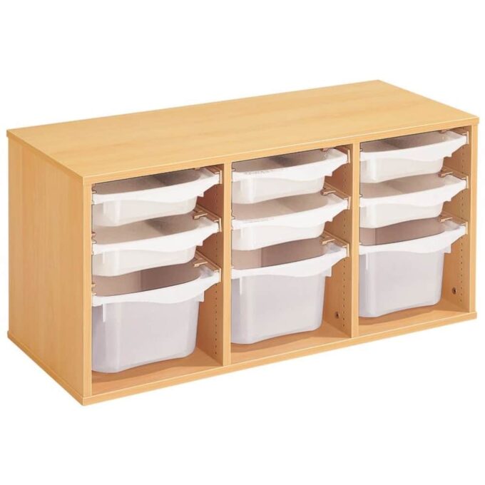 Regal mit Melaminbeschichtung mit 9 Behälter auf Schienen – Höhe: 51 cm – Länge: 105 cm