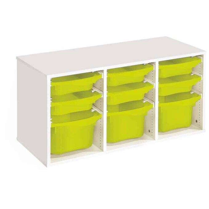 Schreibe die erste Rezension für „Regal mit Melaminbeschichtung mit 9 Behälter auf Schienen – Höhe: 51 cm – Länge: 105 cm“