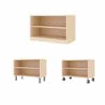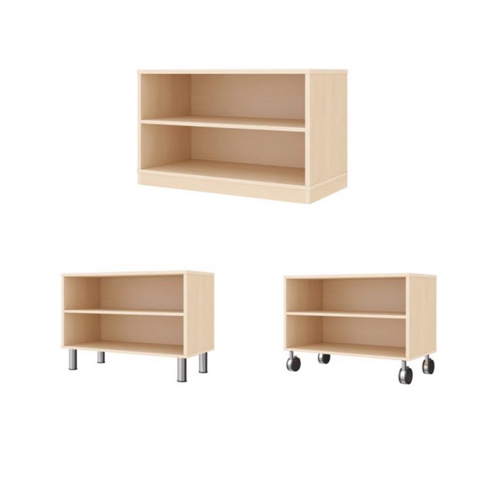 Seine durchdachte Größe ermöglicht vielseitige Einsatzmöglichkeiten – ob als Ablage für Lernmaterial, Bücher oder Spielzeug, als Raumteiler oder zur Ergänzung einer bestehenden Möbelkombination. Dank der verschiedenen Sockelvarianten (Holzsockel, höhenverstellbare Sockelfüße oder Feststellrollen) lässt sich der Regalschrank optimal an die individuellen Anforderungen Ihrer Einrichtung anpassen.