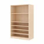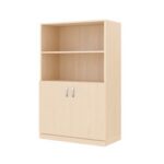 Mit einer Höhe von 120 cm ist der Schrank für Kinder leicht zugänglich. Die Kombination aus zwei offenen Fächern und einem geschlossenen Stauraum mit Doppeltüren schafft Platz für Lehrmaterialien, Spiele, Bücher oder Bastelutensilien. Das hochwertige Ahorn-Melamin-Dekor sorgt für eine helle, freundliche Optik und fügt sich harmonisch in moderne Raumkonzepte ein.