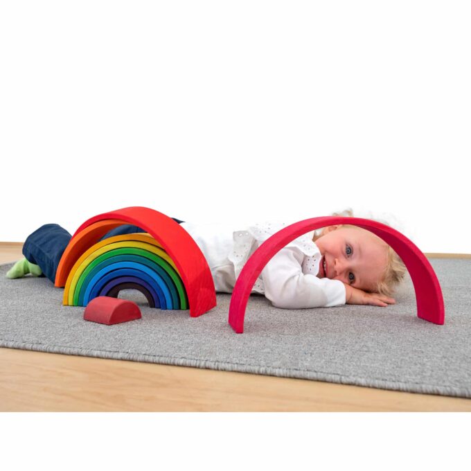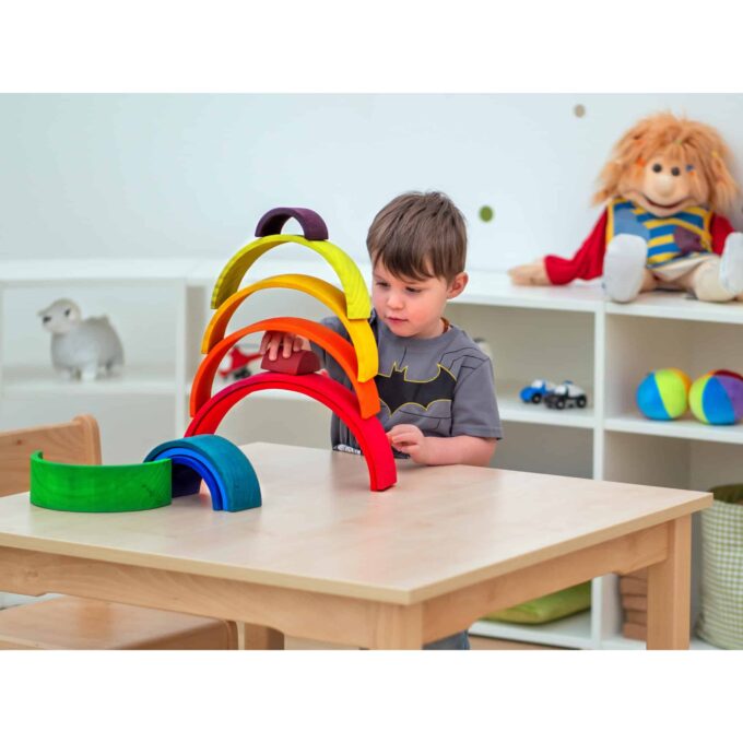 Egal ob das Kind alleine spielt oder in einer Gruppe von Freunden – die Einsatzmöglichkeiten des Regenbogens sind nahezu unbegrenzt. Durch kreative Rollenspiele entwickeln die Kinder nicht nur ihre Fantasie, sondern lernen auch soziale Fähigkeiten.
