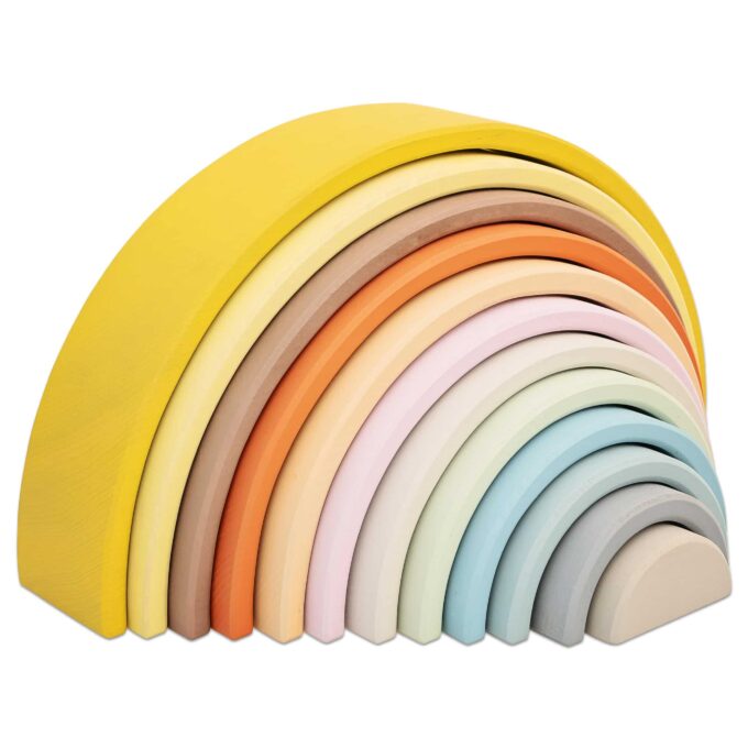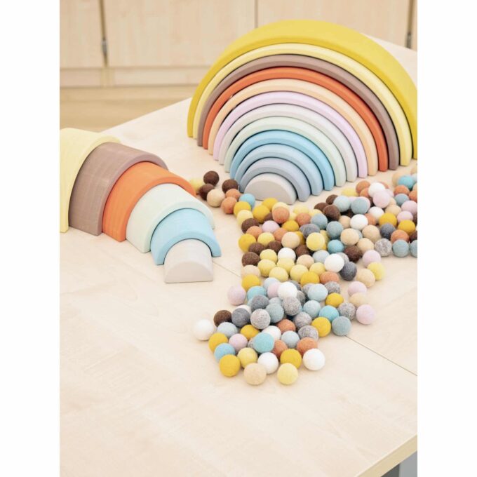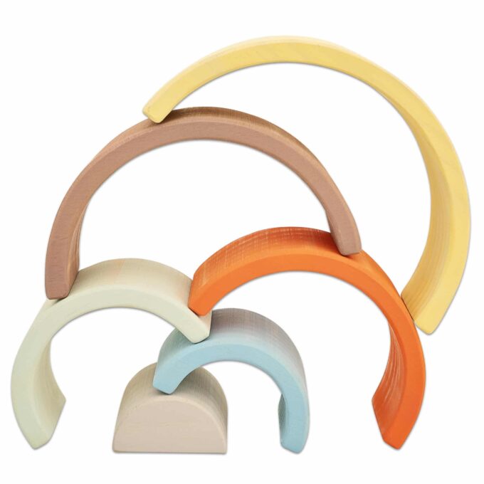 Die natürliche Struktur des Holzes und die sanften Rundungen sind ideal für kleine Kinderhände. Der Betzold Regenbogen lädt zum Fühlen und Entdecken ein. Das Spielen mit den verschiedenen Formen wirkt sich positiv auf die Feinmotorik aus und regt den Tastsinn an.