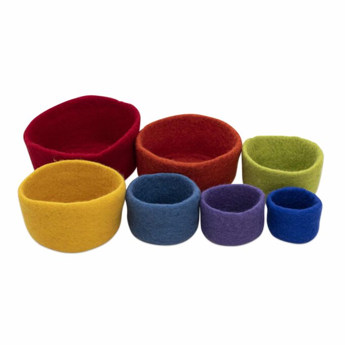 Betzold Regenbogen-Filzschalen, stapelbar, 7-tlg. – Farbenfrohes Spielen und Lernen!