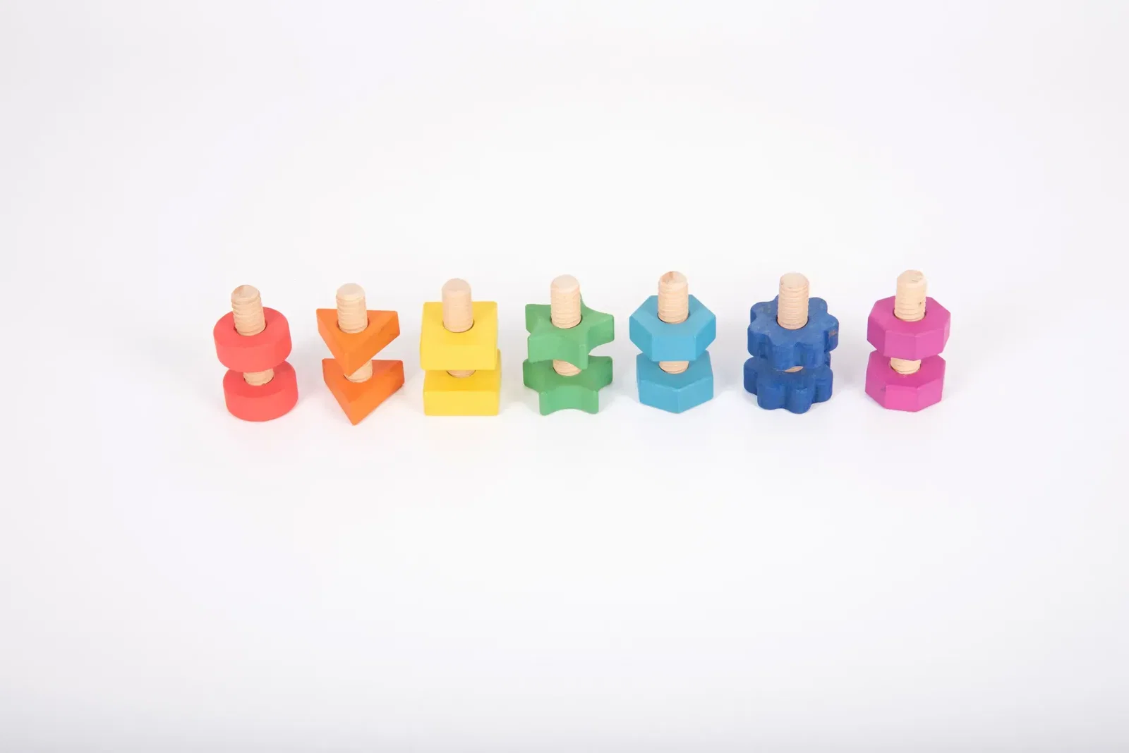 Regenbogen Holzmutter & Schrauben – Farbenfrohes Lernen für kleine Entdecker!