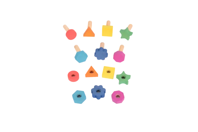 Die Regenbogen Holzmutter & Schrauben bieten nicht nur eine Vielzahl an Spielmöglichkeiten für Ihre Kinder, sondern unterstützen sie auch in ihrer Entwicklung. Jede der acht Zentimeter großen Schrauben hat eine passende Mutter, die nach Farbe und Form kombiniert werden kann. Die verschiedenen Formen besitzen unterschiedliche Kanten – von 1 Kante (Kreis) bis zu 8 Kanten (Achteck), was den Kindern hilft, ein besseres Verständnis für geometrische Formen und deren Eigenschaften zu entwickeln.