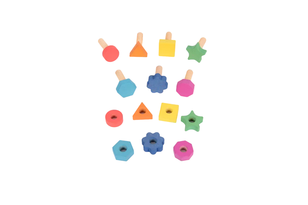 Durch das Spiel mit den Holzmüttern und -schrauben können Kinder ihre Kreativität ausleben, während sie gleichzeitig wichtige motorische Fähigkeiten trainieren. Ob beim Schrauben, Drehen oder Kombinieren – die Kinder üben ihre Fingerfertigkeit und üben sich im präzisen Umgang mit den Teilen. Die bunten Farben der Holzspielzeuge wirken ansprechend und sorgen dafür, dass die Kleinen viel Freude beim Spielen haben.