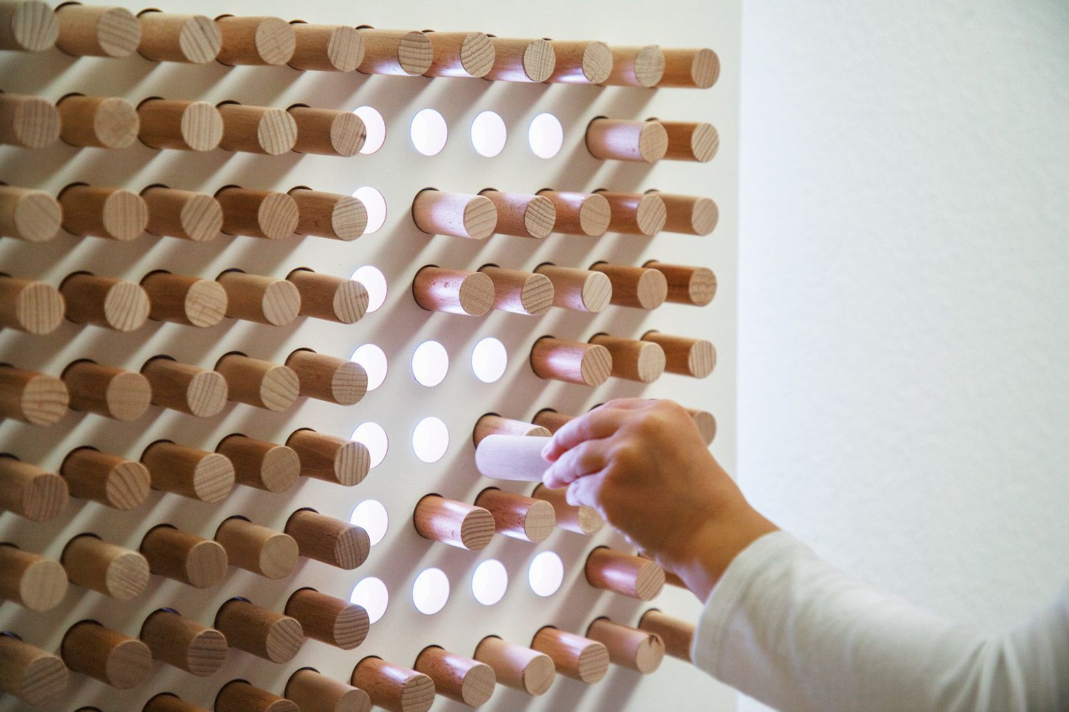 - Negativ-Effekt sichtbar machen: Mit den Holz Steckern (103 512) können Kinder Löcher verdunkeln, wodurch der Negativ-Effekt sichtbar wird. So werden sie zusätzlich in die grundlegenden Konzepte der Farbe und Form eingeführt.