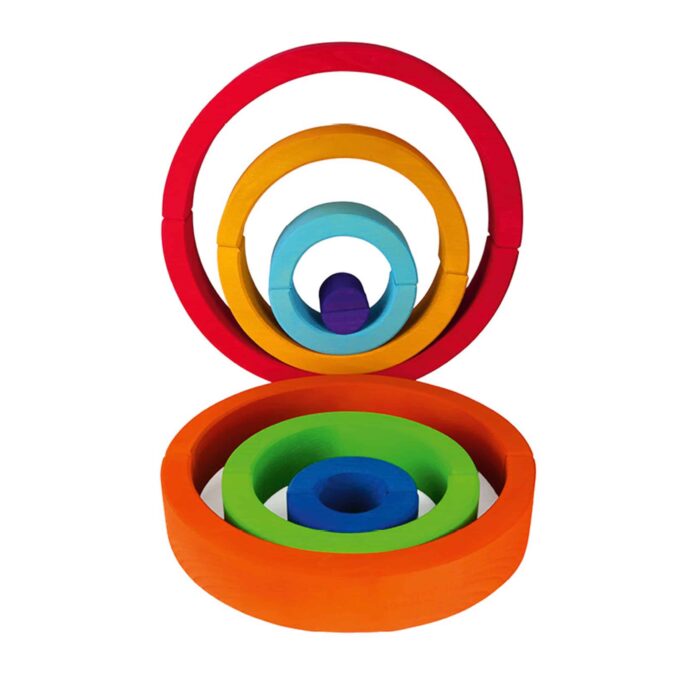 Der Regenbogen „Halbkreis“ besteht aus 7 Teilen, die die lebendigen Farben des Regenbogens repräsentieren. Mit einer Größe von ca. 35 x 17,5 x 5 cm ist dieser Halbkreis ideal für kleine Hände geeignet und lädt dazu ein, fantasievolle Bauwerke zu kreieren. Jedes Stück ist sorgfältig verarbeitet und besticht durch eine glatte Oberfläche, die ein angenehmes Spielgefühl bietet.